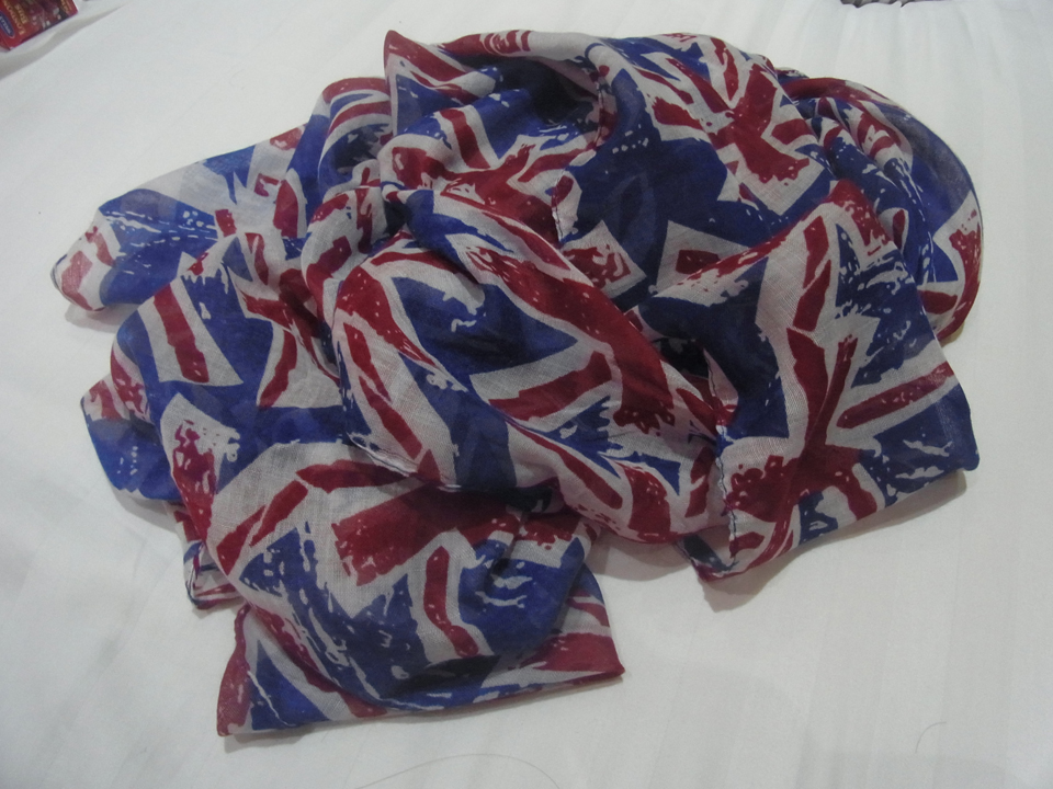 駅前のお土産やさんで買ったユニオンジャックのスカーフ。右のはピンクで自分用♪ランスのTER、サン・レミ教会