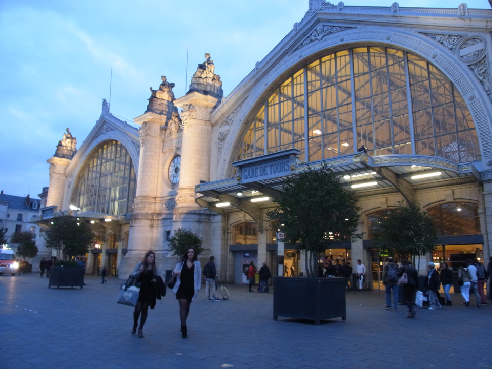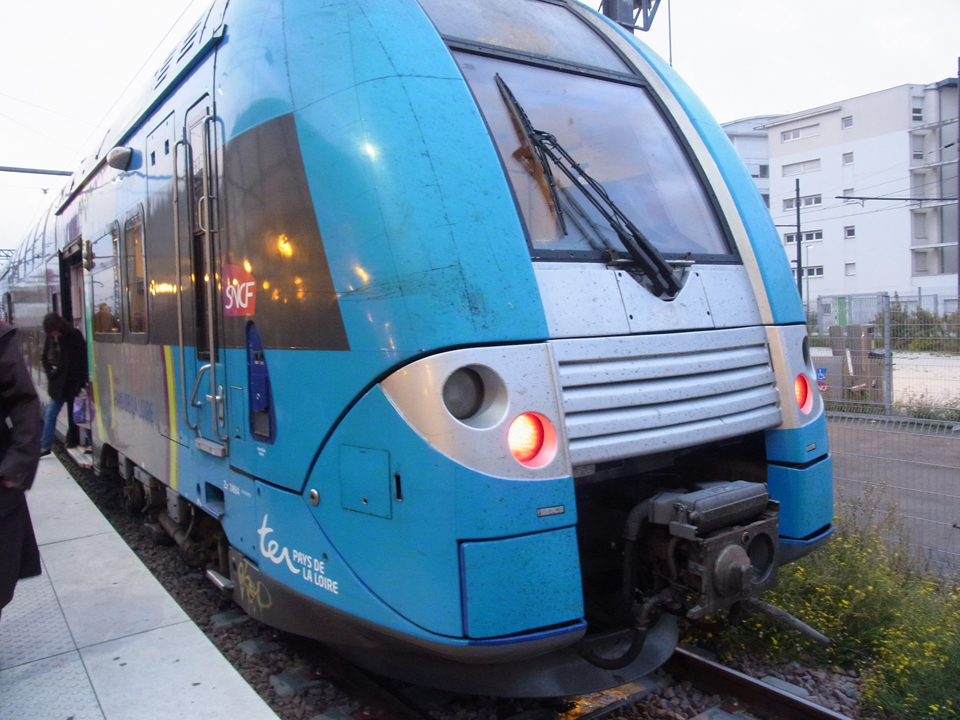 ロビーが綺麗なので写真パチリ。そして、この日は6時半から朝食を食べ、7時過ぎに駅へ向かった。まだ暗い。。。そして、ソミュールまでの切符と、出来たらソミュールからアンジェ、アンジェからトゥールに戻ってくる切符もまとめて買っておくことにした。無人の駅もあるので、往復で買っておくのが安心です。、窓口がまだ開いていないので、券売機で買うことにした。 |