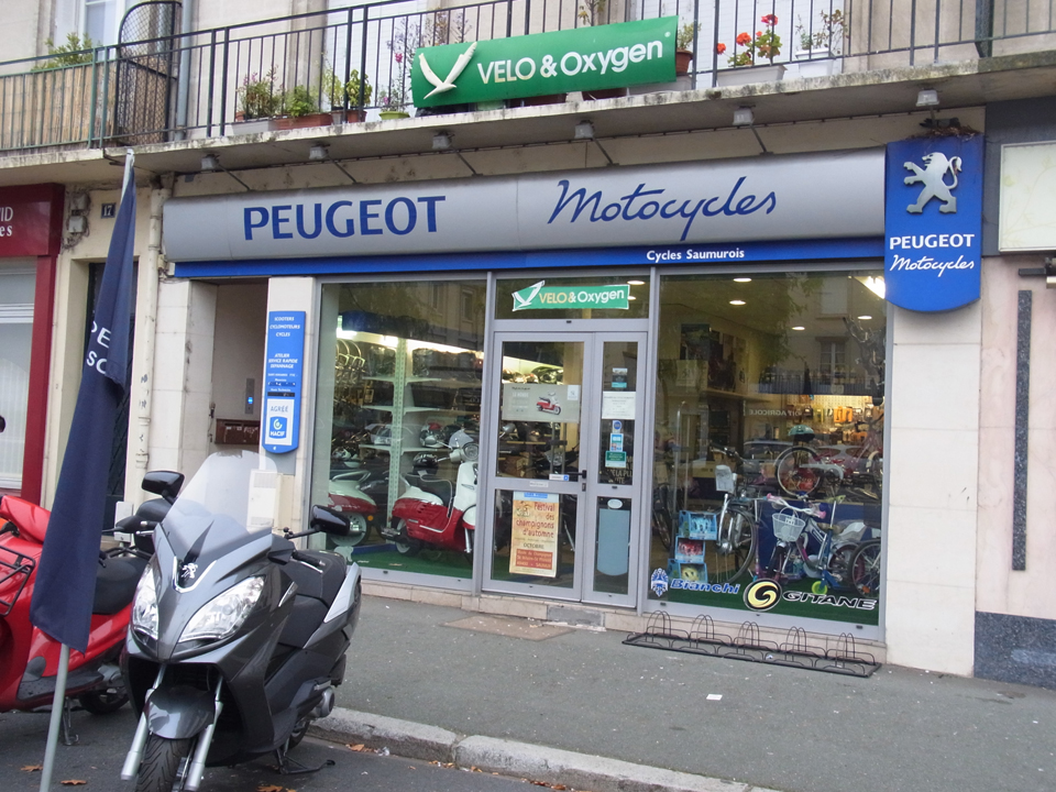 陸橋から見た線路。そしてロワール川にかかっている橋を渡る。でも、ロワール川に水がない。。。なんか水がないと綺麗な感じがしないー。やっぱり川って水が命なのかも〜。そして、橋を渡り中州のところにある、サイクル・ソミュロワというレンタサイクルやさん。プジョーの自転車とかパイクが置いてあって、日本ではシトロエンに乗ってるので、親近感でテンションがあがる(笑) |