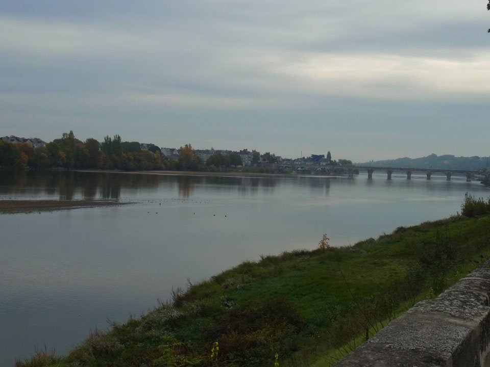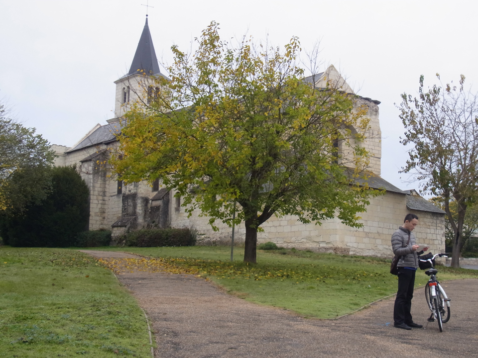 本当はソミュール城も見学したかったけど、どう考えても時間が足りない。ということで、前もってお城をバックに写真の撮れる場所をストリートビューで探しておいた。この中州内の川沿いでソミュール城の対岸の場所が一番いいはずと予測して行ってみたら案の定だった♪橋の横に下に降りる場所がある。川とお城のロケーションは間違いない! |