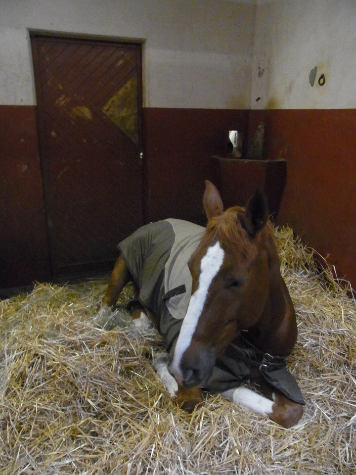 馬も見学され慣れてるのか、お客さんの服をかじってみたり、色んな表情を見せてくれて愛嬌がある(笑)右の写真は貴重な座ってる馬の写真。そして一番右は馬術ショーの会場かな〜馬術ショーもいつか見てみたいなと思うけど、この先またソミュールに来ることがあるのだろうか・・・(笑) |