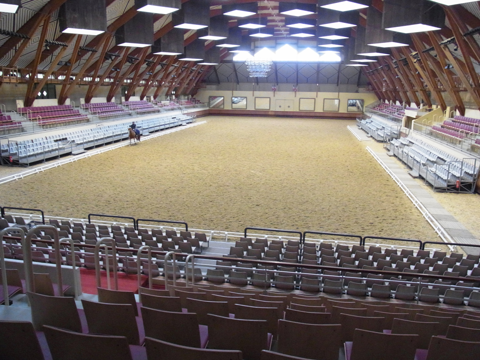 | 見学は10時から1時間でフランス語のみ。メールで問い合わせた時に「11時から英語の説明の見学もあるよ。それは予約が要るよ」と言われたけど、私はフランス語で聞きたかったし、自転車が返せなくなるので10時のにした。3.40人くらいいたかな。馬術学校の歴史の話があって、質問してる人もたくさんいた。結構乗馬をしてる人もいる感じだった。内容は専門用語などで難しすぎて、半分も聞き取れてないけど(笑)写真右下の馬術ショーの会場を見ながらの説明の時11時になってしまったので、静かに2人だけ抜けて、ダッシュで帰った!受付の手前にトイレもありました。馬術学校の写真の続きはこちらのサイトから |
