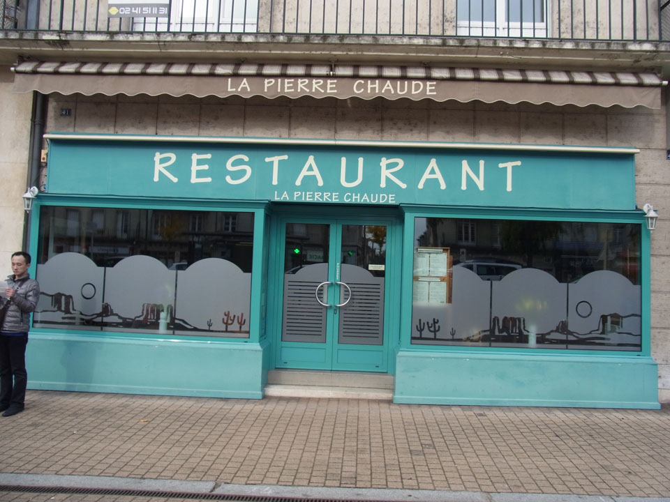 さっさと買い物を済ませ、店を出たのが20分、帰りは下りが多く、行きより楽だったので、なんとか5分前に返却できてよかった。そして、ランチを予定していた自転車やさんのすぐ近くのpierre chaudeへ行ったらなんと閉まっている!!昼間の写真が掲載されてたのに、貼り紙がしてあってオープンが夜からになっていた。C'est dommage!(残念) |
