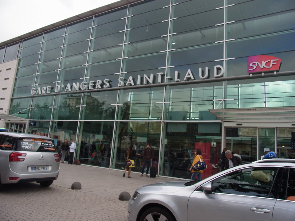 ソミュール駅に到着〜小さい(笑)もう窓口も開いてるので、とりあえず先にアンジェまでの切符と帰りのトゥールまでの切符を買っておいた。午前9時とは思えないほど人通りがない〜朝7時くらいの感じ。。。そして曇っていて、ちょっと肌寒い〜! |