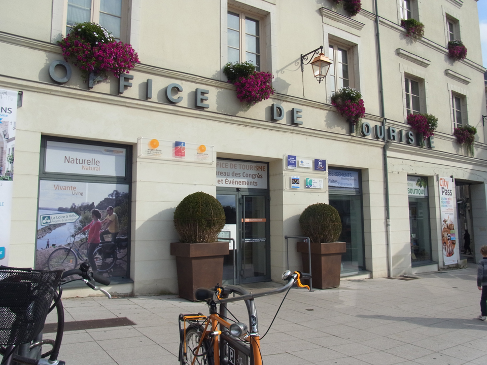 | まず最初の目的地は観光案内所。googlemapで調べたら、観光案内所が2つあったけど、どうやら1つに統合されたのか、1つめの場所にはこんな貼り紙があった。アンジェと言えばコアントローの産地。コアントロー博物館にも行きたかったけど、時間が取れなかったので、とりあえずコアントローだけ買った。9.8€ そしてテーブルの上に色鉛筆とぬり絵が置いてあって、可愛いので3才の姪っ子用に持って帰った(笑)コアントローの見学のことを聞こうと思って、ホームページ見たけど、連絡がなかなか見つけられず、別のページで見つけたメールアドレスらしきものに、メールを送ってみたら、どうやらスタッフさん個人のアドレスだったみたいで、「今日はお休みでいないけど、こっちにメールしてみて」と別のアドレスを教えてくれた。そして、そちらにメールしてみたけど、返事は来なかった(笑)まあ、今回はほんとうに時間がなかったので、また今度行ってみたいと思う。 |