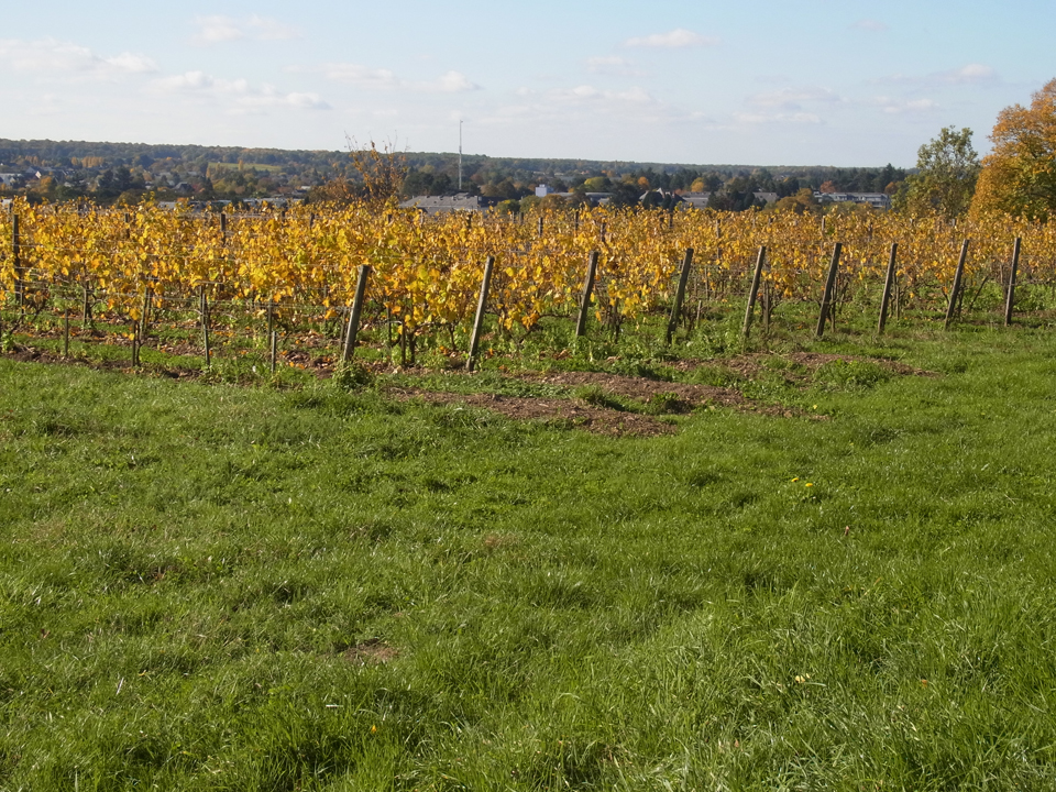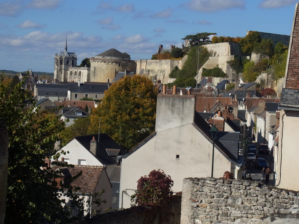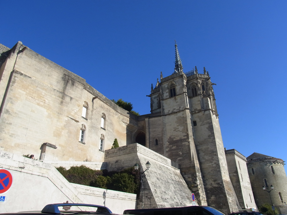 まっすく一本道で行けると思っていたので、予想外で、上り坂も多くてかなり時間がかかる。途中葡萄畑があったり、住宅街の中を通ったり、日曜日のせいか人もほとんど歩いていない。そしてアンボワズ城の裏口のような門があり、展望台もある一番高いところへ出てきた。ここから左の車が入れないような下り坂の道を下りて行く。。帰りが心配(^^; |