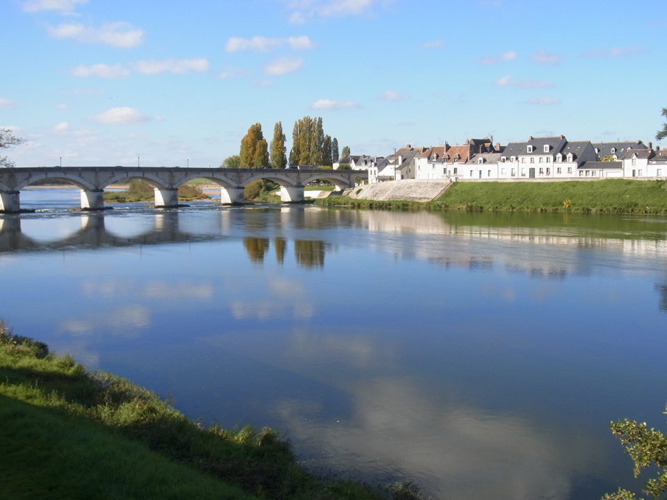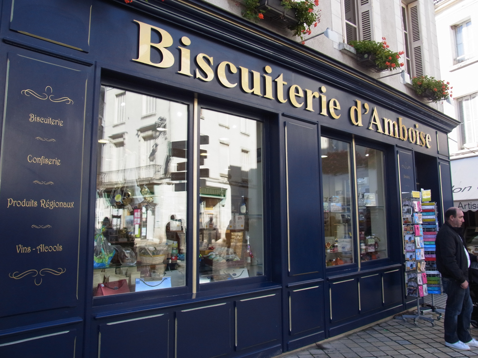 アンボワズ城はやっぱり川をバックに撮りたいので、マレシャル・ルクレール橋を渡って対岸に行こうとしたけど、交通量も多くて危ないからとだーりんに反対され、橋の途中で写真を撮って引き返すことになった。そして、ビスケットやさんでお菓子と名前入りの物差しを買い、隣のお土産やさんで姪っ子のTシャツとコースターを買い、帰りは登りが多いこともあり、ホテルに戻ることにした。 |