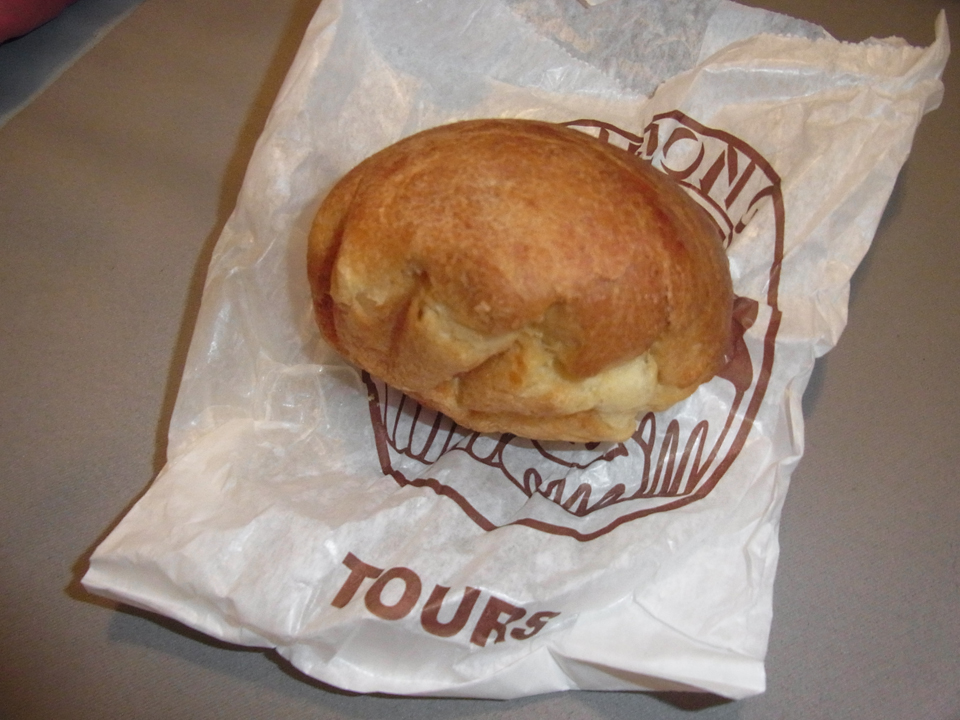 | そして一昨日気になってたブリオッシュ屋さんが開いてた!朝は7時半からで、売り切れ御免のお店のよう。プレーンとチョコレートチップがあり、お腹いっぱいなので1つだけ買った!なんと0.5ユーロ!安すぎる〜(笑)そして、これ夜に食べたけど時間経ってもすごく美味しかった(*^^*) |