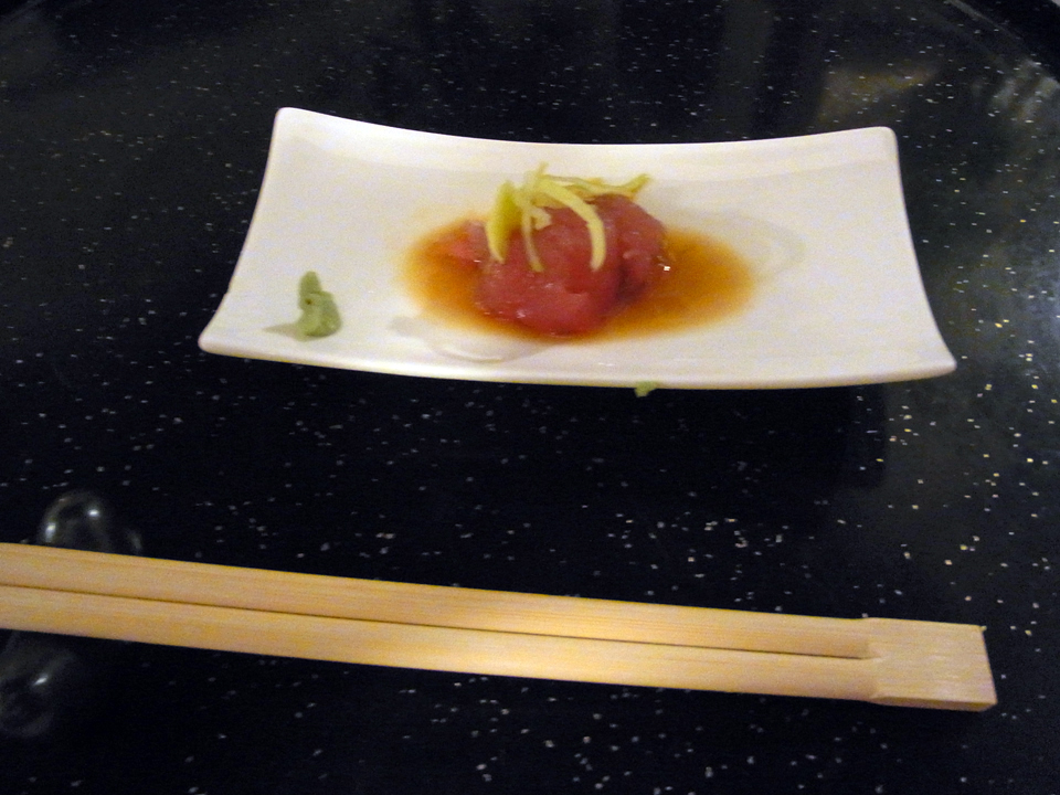 し、じゃあ日本食にする?と提案して、だーりんがスマホで探したお店へ行った。日本人のマダムが出てきて、実はその日は厨房の人が1人休んでいて、1人で料理を作っているらしく、かなりお待たせしてしまうけどそれでもよかったらということだった。お客さんは外国人でほぼ満席でまだほとんどの人が食べてない状態。でも店内の出汁のいい匂いを嗅いでしまったら、もう待つしかない。 |