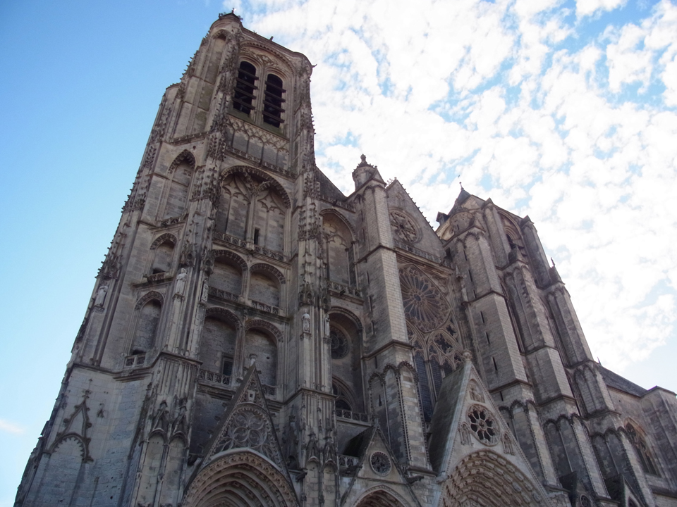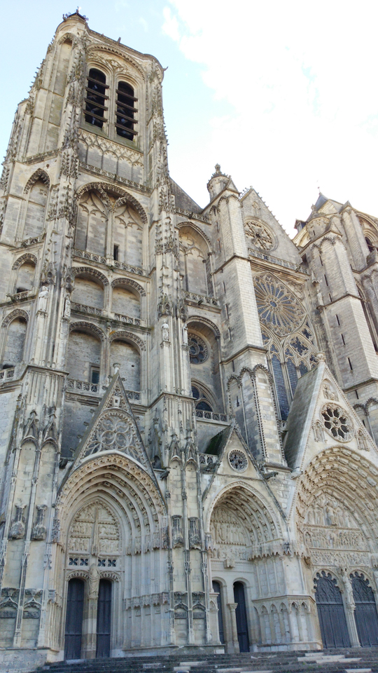 サンティティエンヌ大聖堂(ブールジュ大聖堂)が見えてきた。確かに壮麗。枯葉との風景が秋らしい。でも春の花が咲いてる頃ならもっとよかったかもなあ。そして、この大聖堂の中で、なんと日本人のバックパッカー一人旅風な若い男の人がいて、「こんにちは〜」と挨拶してくれたが、明らかになんでこんなところに日本人が?という表情だった(笑) |