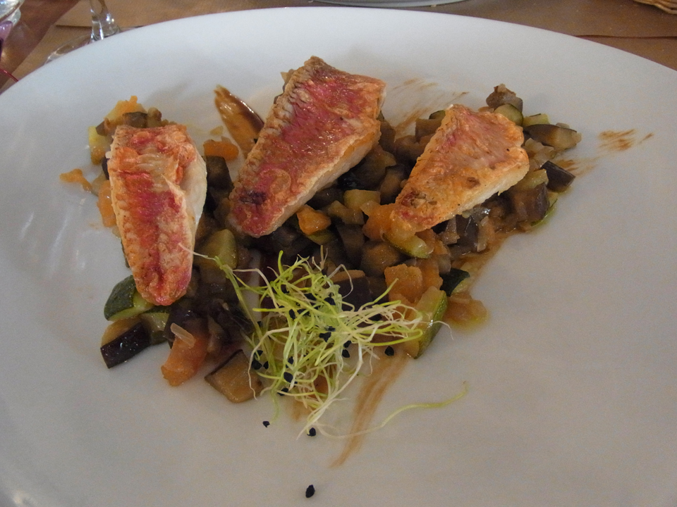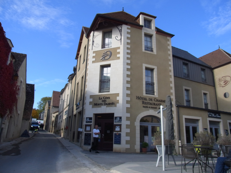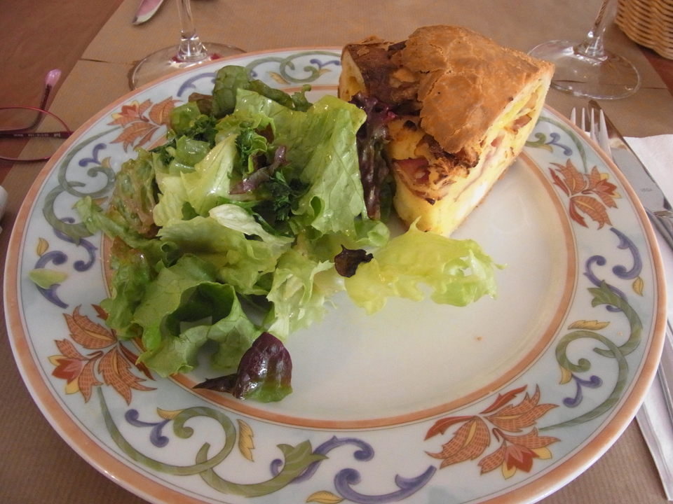 ここがアンリ・ブルジョヲのレストラン。レストランと気軽なビストロとホテルもある。平日なのに駐車場にも車が多く、レストランも結構いっぱいだった。何日か滞在してると肉がしつこくなりつい魚を注文してしまうが、フランスの魚が美味しかったことがほとんどない。次からはもう肉だけにしよう。シェーブルの入ったキッシュが美味しかった。 |