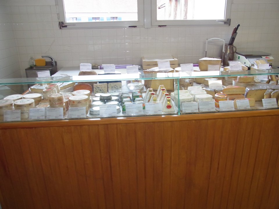 さて、お腹も一杯になったのでチーズやさんを探しに。。地図では2軒あるはずだったが、名前が似てるので姉妹店とかで統合されてしまったのかも。チーズ屋さんがあるだろうの近くを歩いていたおばあちゃんに道を聞いたらとてもゆっくりわかり易いフランス語だった。「Allez tout droit,a la place,à gauche」まっすぐ行って広場の左にあるよ。 |