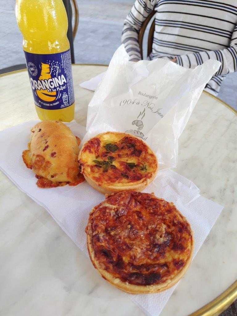 Cyrilというパン屋さんの前を通りがかったので、ここで朝ご飯を食べることにした。美味しそうなお総菜パン的なものを買ってオランジーナと一緒に食べた。しかし、ショーケースの中に蜂?蠅?が1匹だけやけど、うろうろしてて、そのあとテラスの椅子で食べてる時も蜂がよってきて、パンに止まろうとするし、刺されたら恐いしと逃げ回ってたけど、隣でパン食べてた女の人は蜂なんか全然気にしてない様子で、こちらを見て「じっとしてたら大丈夫」的なことを言って笑ってた。慣れとは恐ろしい。 |