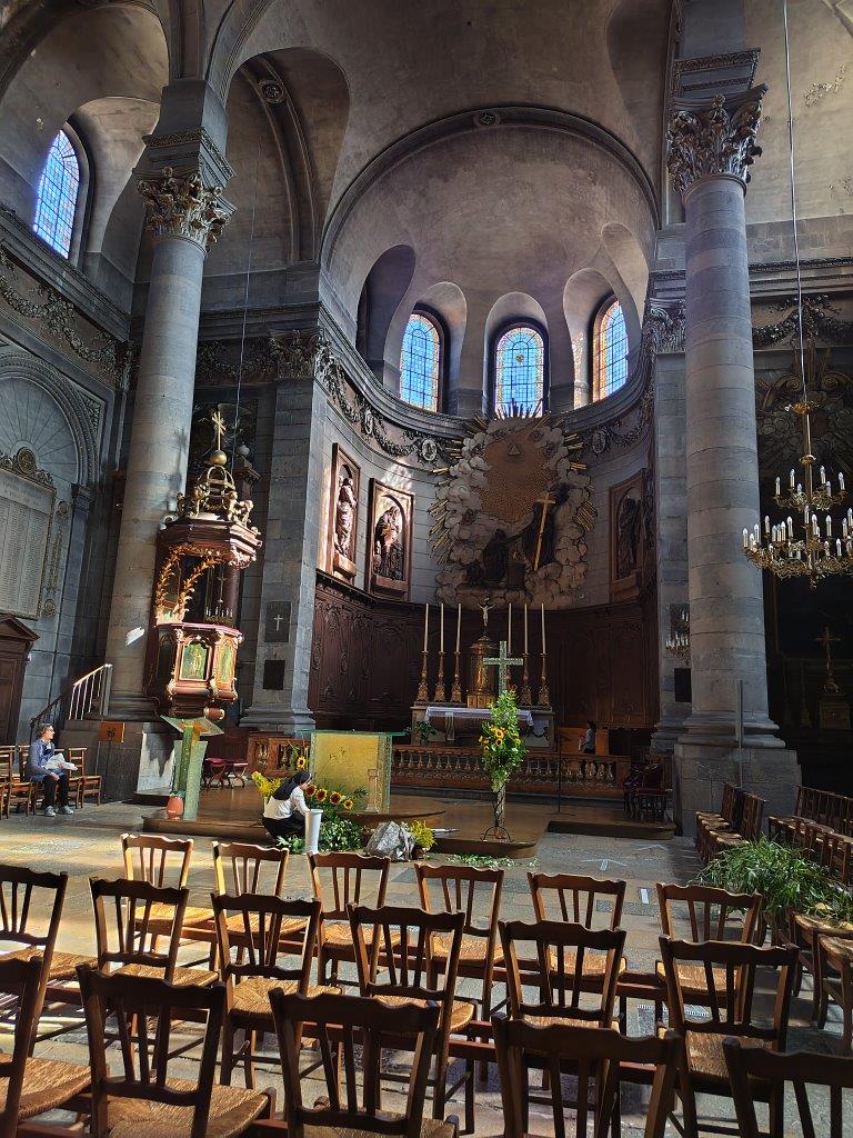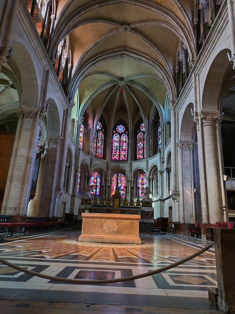さらにそのままグランド・リュ通りを歩いて行くと正面にサンジャン大聖堂が見える。その前に右側にヴィクトル・ユーゴーの家があった。ただ、時間がないので外観の写真を撮るだけで先へ進む。結構な坂道を登って大聖堂の中へ。そして奥に天文時計があった。フランスの大聖堂には天文時計が結構あるけど、すごい立派。この柵の中に入って裏側も見たい場合は有料のようだったので、そのまま写真を撮って外へ出る。 |