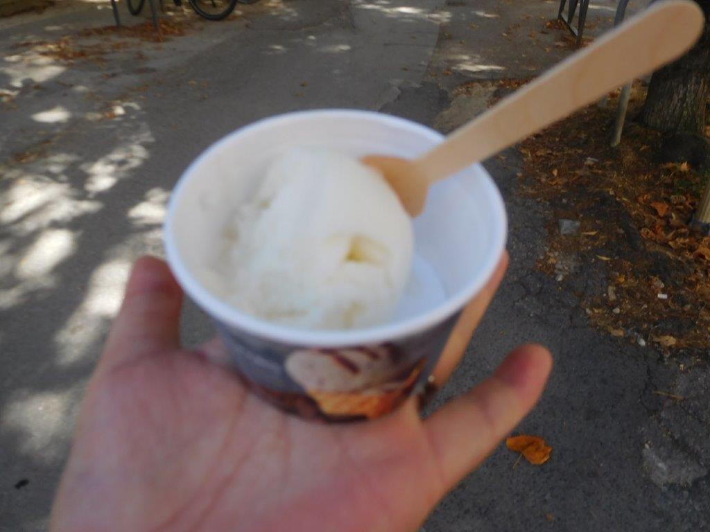 Ledouxの正面から写真を撮る。この近くにもう1つ劇場みたいなのがあり、写真撮ったと思ったけどない。それは中に入らないと外からはすごい感じでもなかった。そしてまたすごーい暑く、ジェラートを食べることにした。おっちゃんが、「はい、お釣は80万円」みたいな人やった(笑) |
