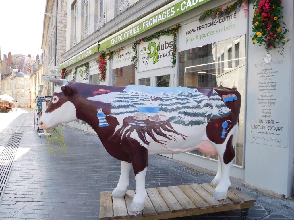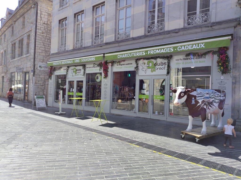 そして、ブザンソンの一番の目的はこのドゥー・ディレクトいうお店。ここのお店は朝来たけど土曜日が午前中休みだった。先生との待ち合わせが遅くなってよかった。ここでの目的@このモンベリアード牛の置物と写真を撮ることAコンテチーズを買うことBクレマン・ド・ジュラを買うこと。目的はすべて達成できた。あと、コンテチーズがめちゃ |