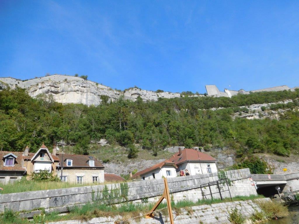 帰りはサンジャン教会の前を下っていき、途中でまたプチトラン乗り場に止まった。ここから城塞群が見える(右上) |