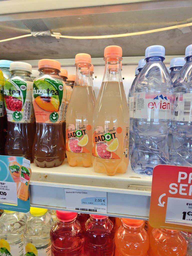 Civette)でコーラを買った。道に時計の銅板がはめ込んである。フランスはこれも楽しみの1つ。 |