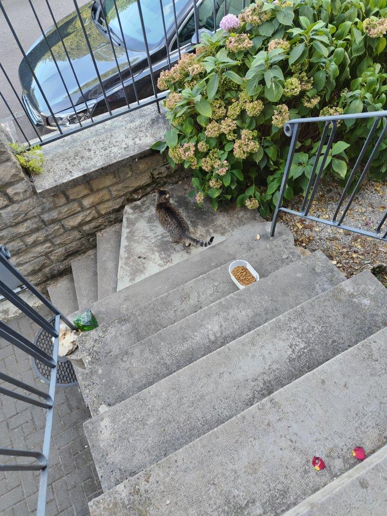 めちゃくちゃのどかなところで、2階の出窓からの景色もすごくいい。家に猫2匹いるのに、野良猫にも餌あげてる(笑) |