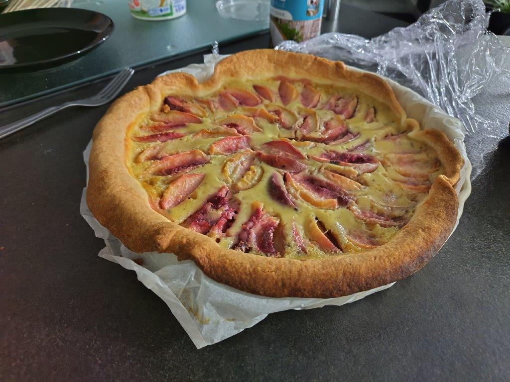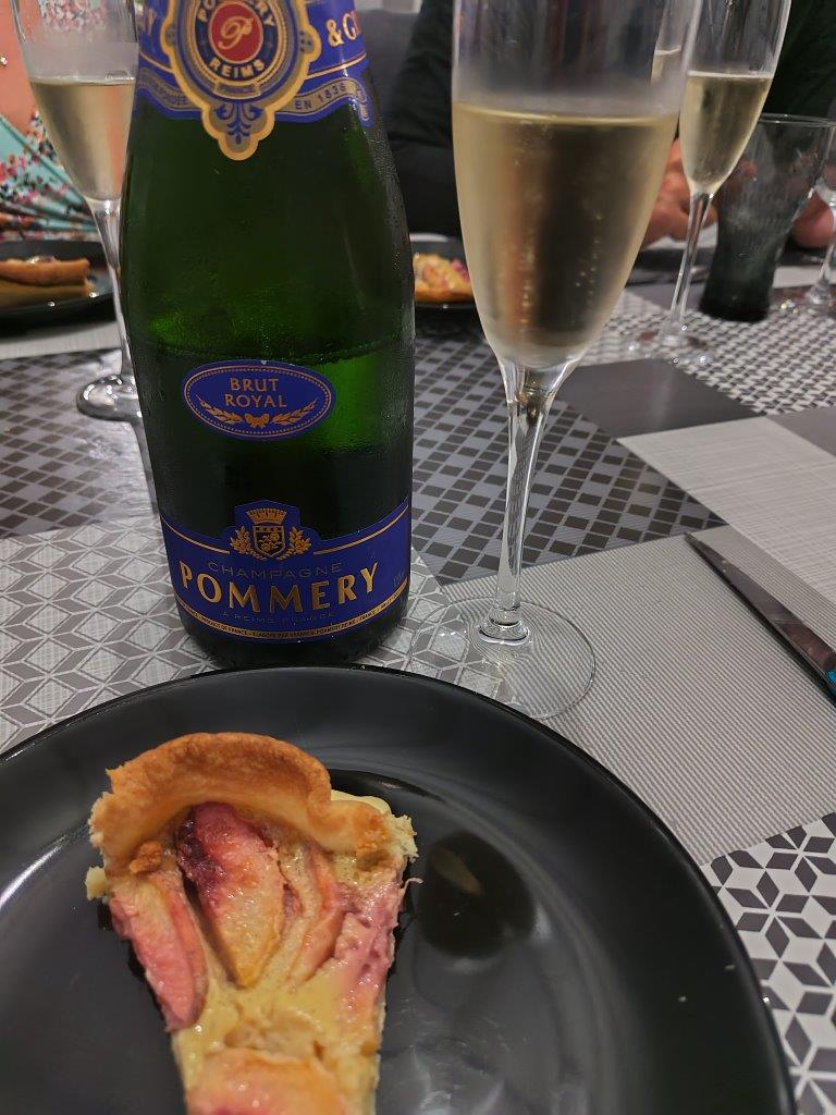この下のケーキは、先生の家の裏庭で取れた桃のタルト。散々食べたあとにタルトとポメリーのシャンパンはしんどい。先生とこの犬、人なつっこくて可愛い♪そして、流石コンテ地方、こんな大きなコンテチーズ出てきた! |