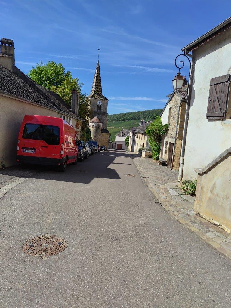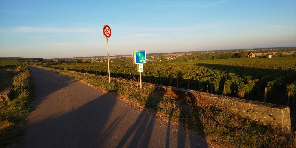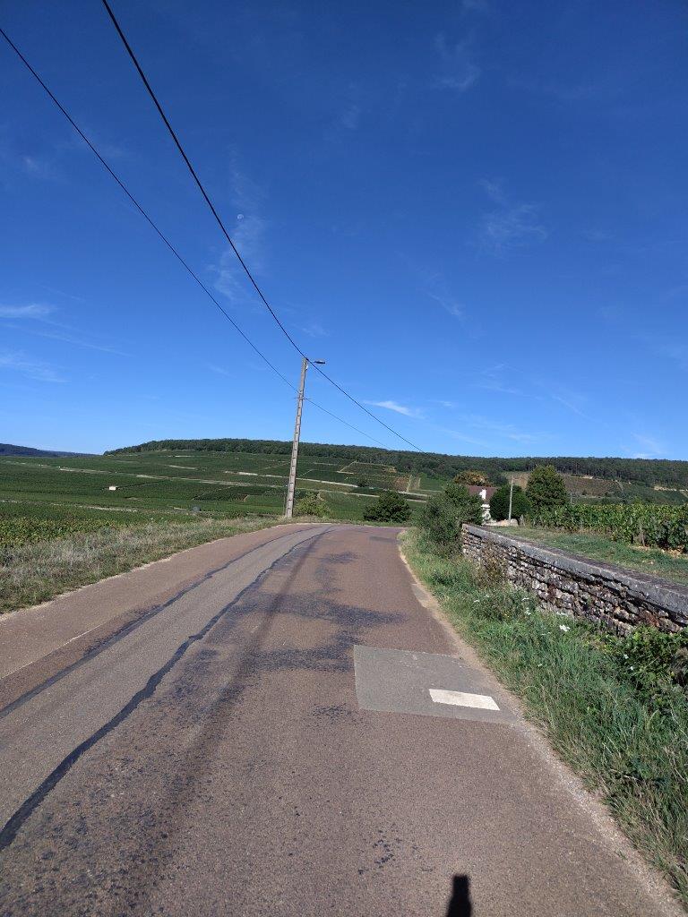 そして今日の夜はショレ・レ・ボーヌのグランクリュ通りにあるエルミタージュコルトンのホテルにあるレストランで食べることにしていた(写真右下端)。ところが昨日のあの真っ暗の状態から想像し、自転車でグランクリュ通りを走って2km以上の道を走るのは危ないということになり、結局キャンセルした。なので帰り道にショレ・レ・ボーヌに寄って、よく飲んでるシルヴァン・ロワシェの建物とかトロ・ボーの建物とかの写真を撮りつつ、明るいうちにホテルの方向に戻ってきた。 |