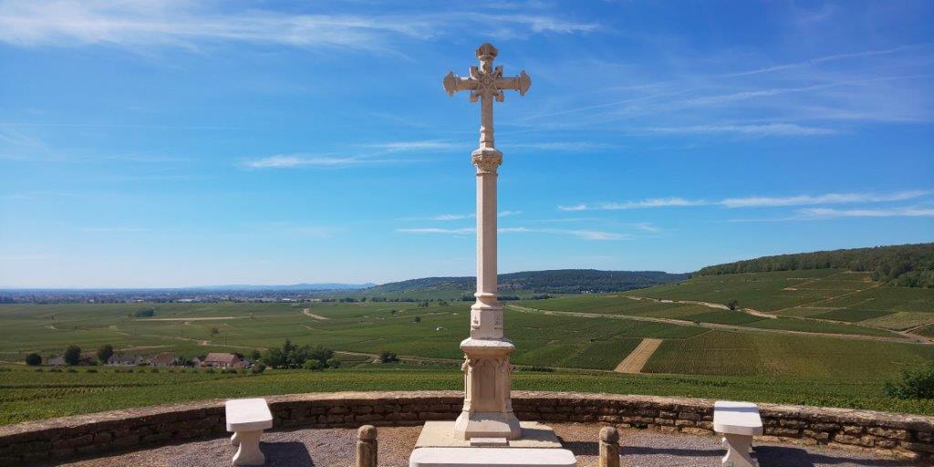 そして、誰かのブログで見てたコルトンの丘の十字架にたどり着いた!!絶景!!そして、この十字架はルイ・ラトゥールの十字架だった。お天気もよかったので最高。 |