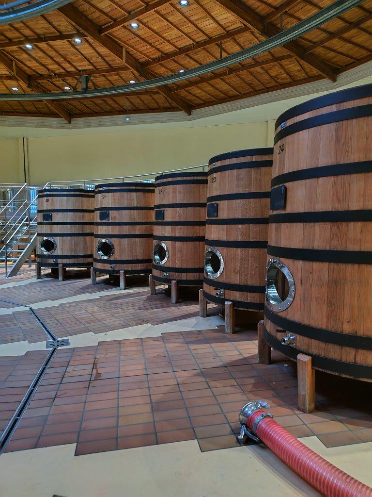 そして今日の目的はルイ・ジャドの訪問。こちらは個人で予約とかではなくて、ワイナリーツアーみたいなのがあって時間が決まっている。英語圏の人が多く15人くらいの人がいて英語だった。でもまあ、ルイ・ジャドは色んなワイン作ってるし、一度は行っておきたかったし、このルイジャドのロゴの前で写真も撮りたかったし(笑) |
