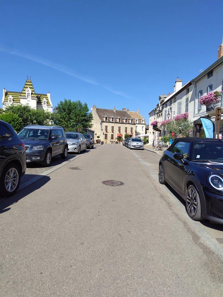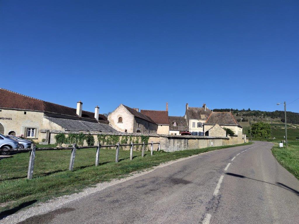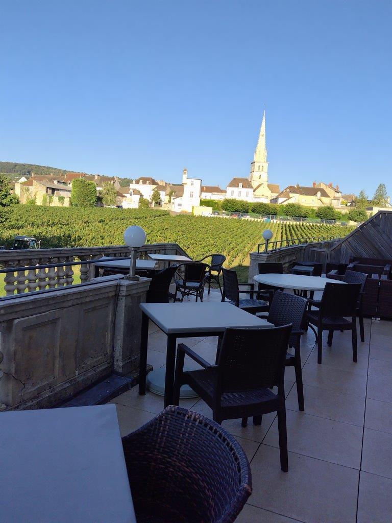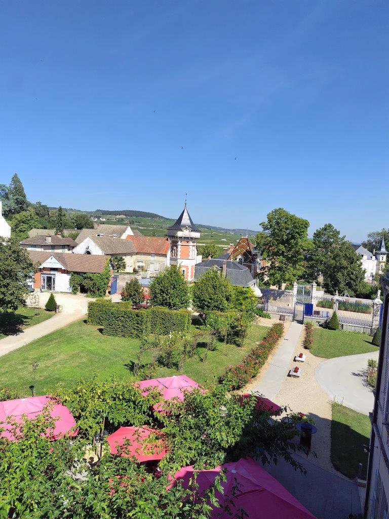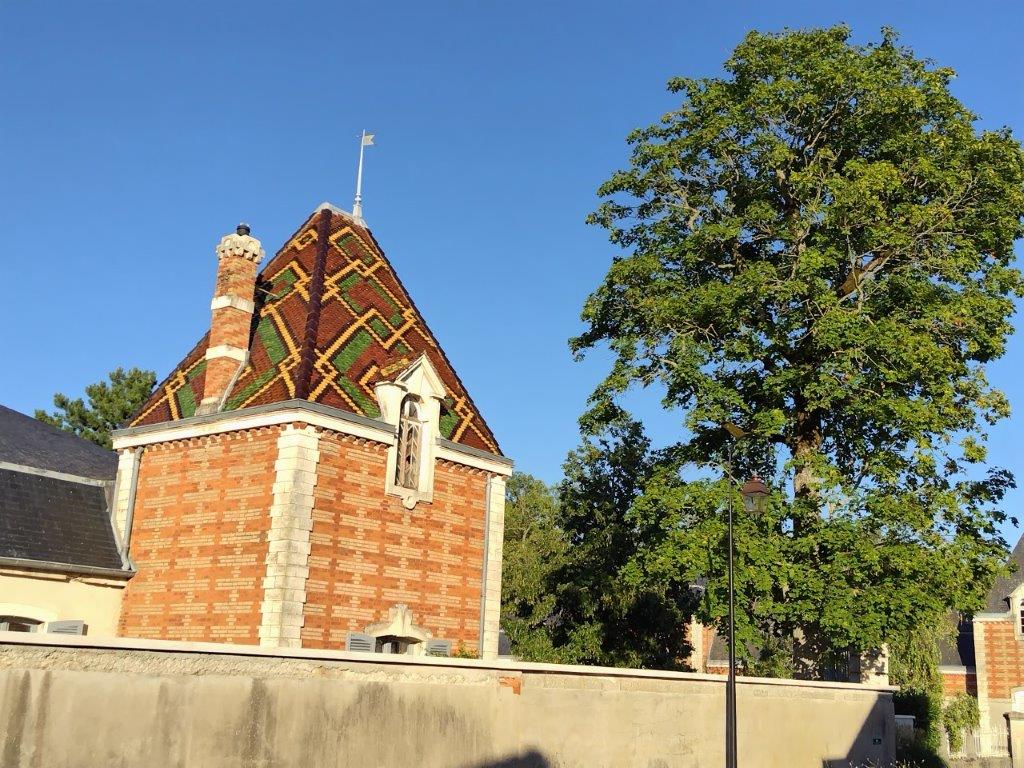 ホテルの玄関の前にある、ブルゴーニュ独特の屋根の建物はDomaine Génot-Boulangerというワイナリーみたい。 |