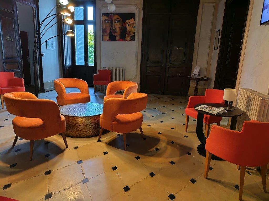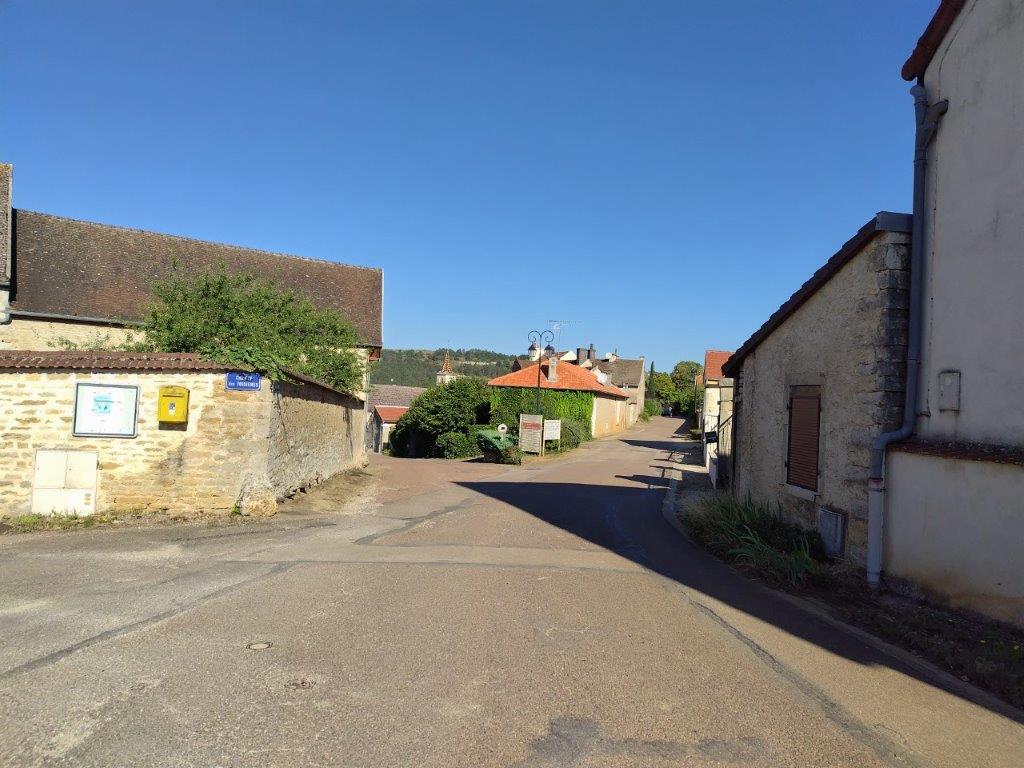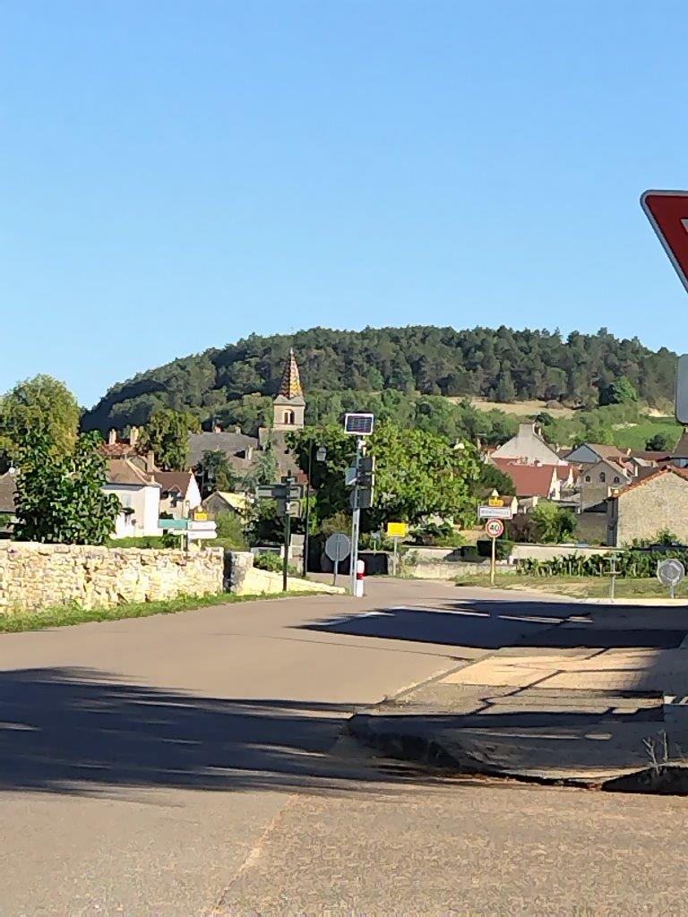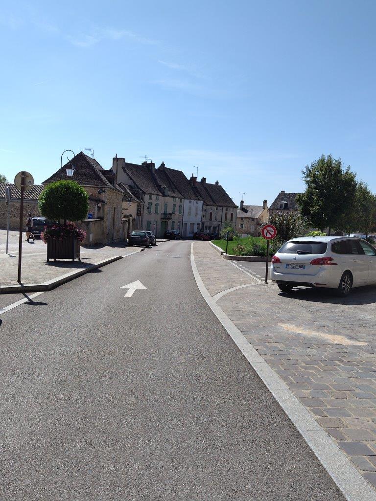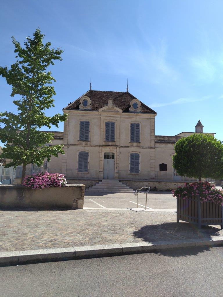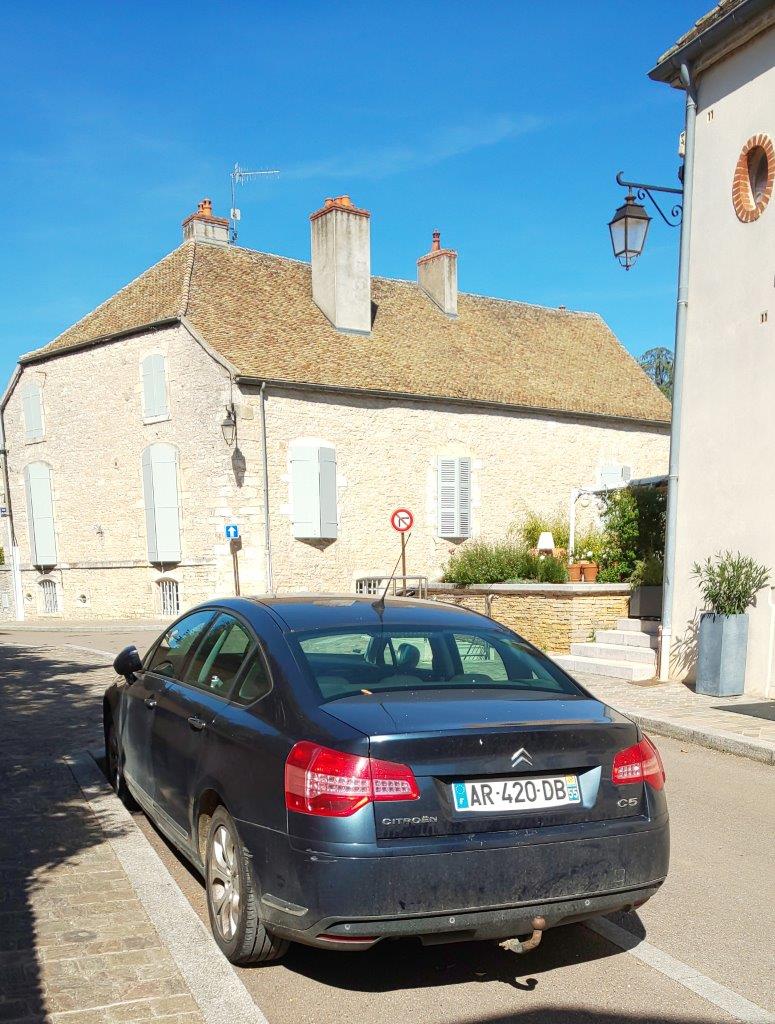 ホテルの玄関の前にある、ブルゴーニュ独特の屋根の建物はDomaine Génot-Boulangerというワイナリーみたい。 |
