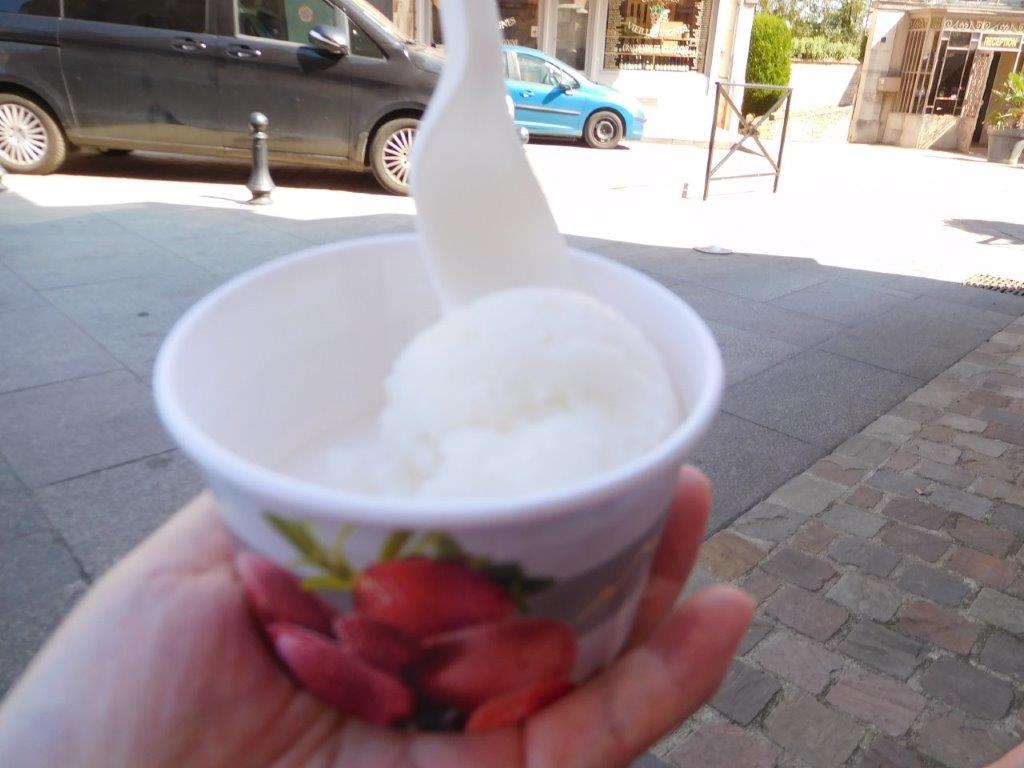 お菓子やさんで菓子パンみたいなのを買ってみた。ここでもショーケース内にハエが飛び回ってる。暑いのでジェラートも買った。 |