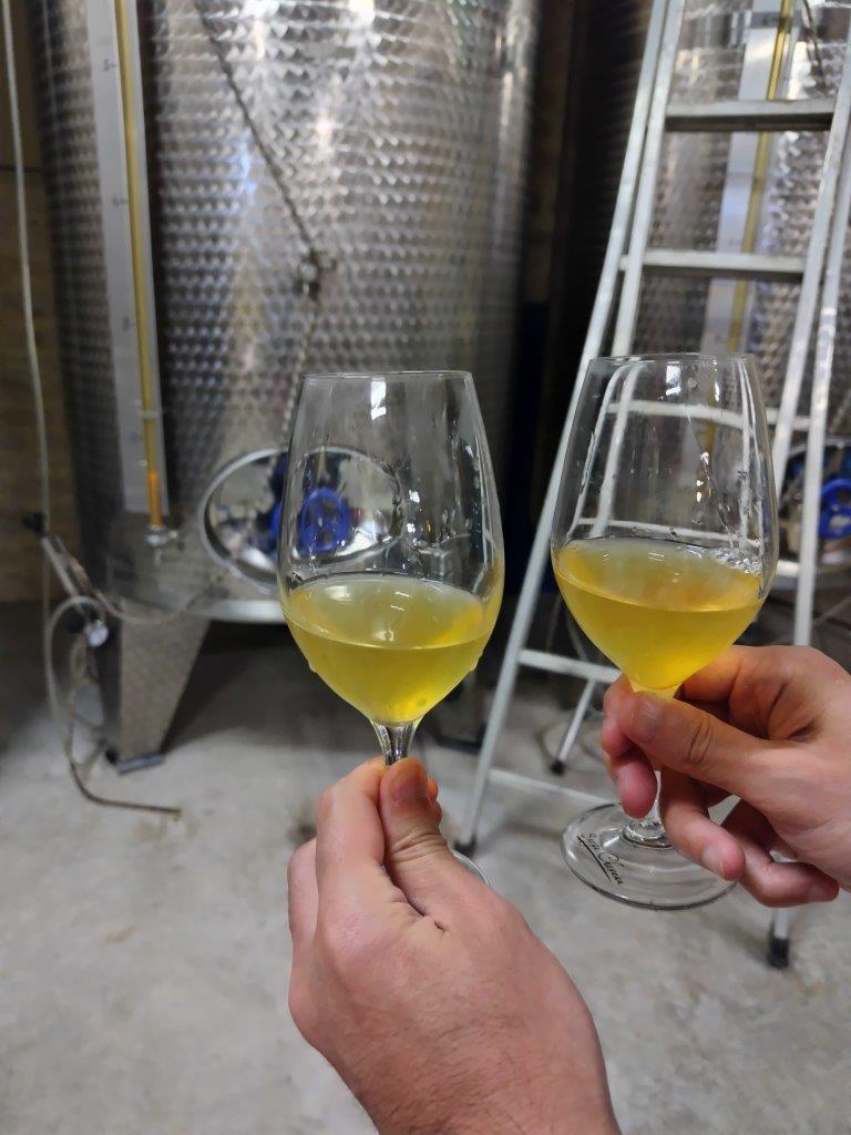 で、テクテク歩いてジョバール・モレへ。この3代目のバロンタンは、5年ほど前にモトックスの試飲会に来てて、訪問したいと行ったら名刺をくれた。そこからコロナでなかなか行けず、そしてその間にムルソーはブルゴーニュの中でも価格があり得ないくらい高騰した。メール送ったら収穫中で忙しいけど、「とりあえず来てみて」みたいな返事 |
