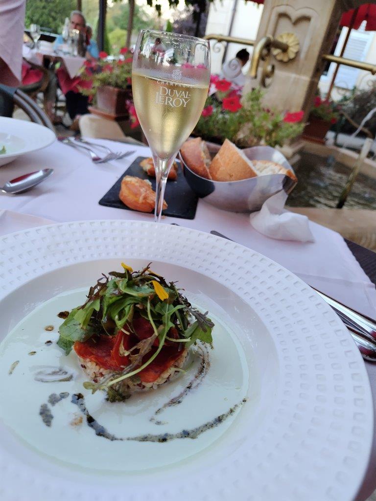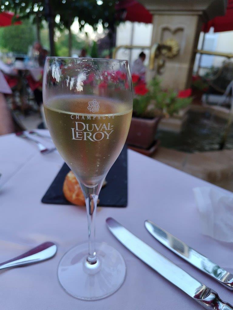 フランス人は外で食べるのが好き。虫がきてもお構いなし。カクテルは飲まなかったけど、リキュールが並んでて、ヴェドレーヌ社のカシスがあった。ピカメロのクレマンもあったけど、日本で散々飲んでるので、シャンパーニュ!デュバル・ルロワのがあった!シューケットもついてて嬉しい。 |