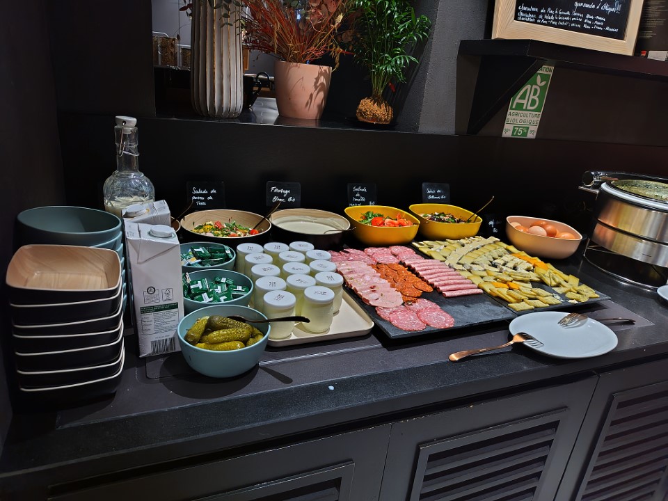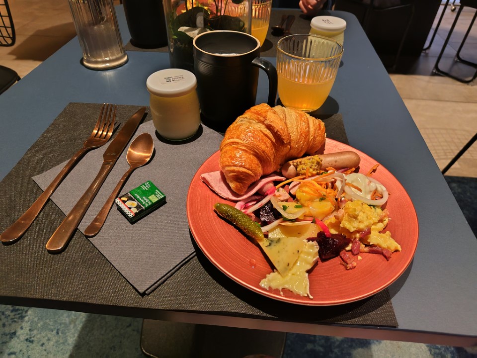 窓を開けるとストラスブールの駅が見える。さすが星4のホテルだけあって、朝ご飯は豪華。クグロフやパンデピスなんかもあって、食べきれない!あとスタッフが英語が出来るので面白くない。都会のホテルなのでそらそうか。。 |