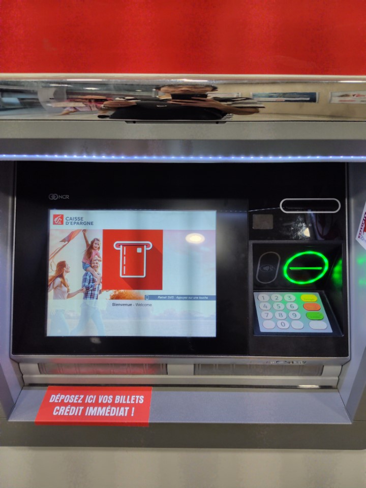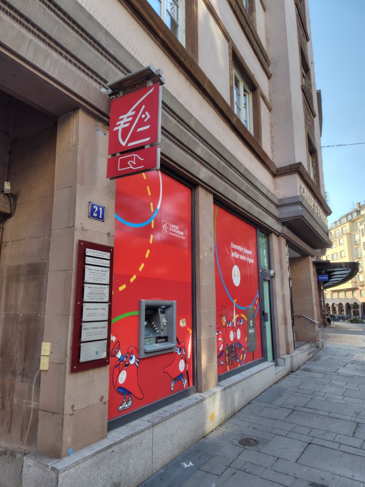 フランスのあちこちで見かける毛ガニ(笑)今回だーりんがここでお金を下ろして、悪戦苦闘してた。Caisse d'Épargne(ケス・デパーニュ)