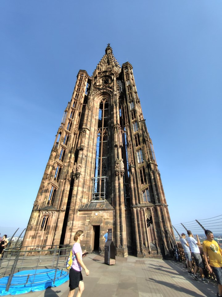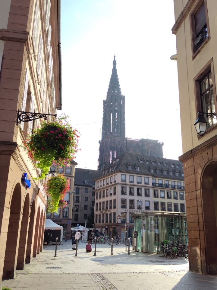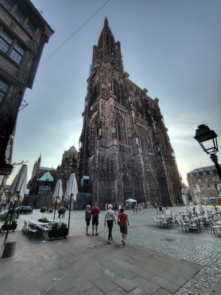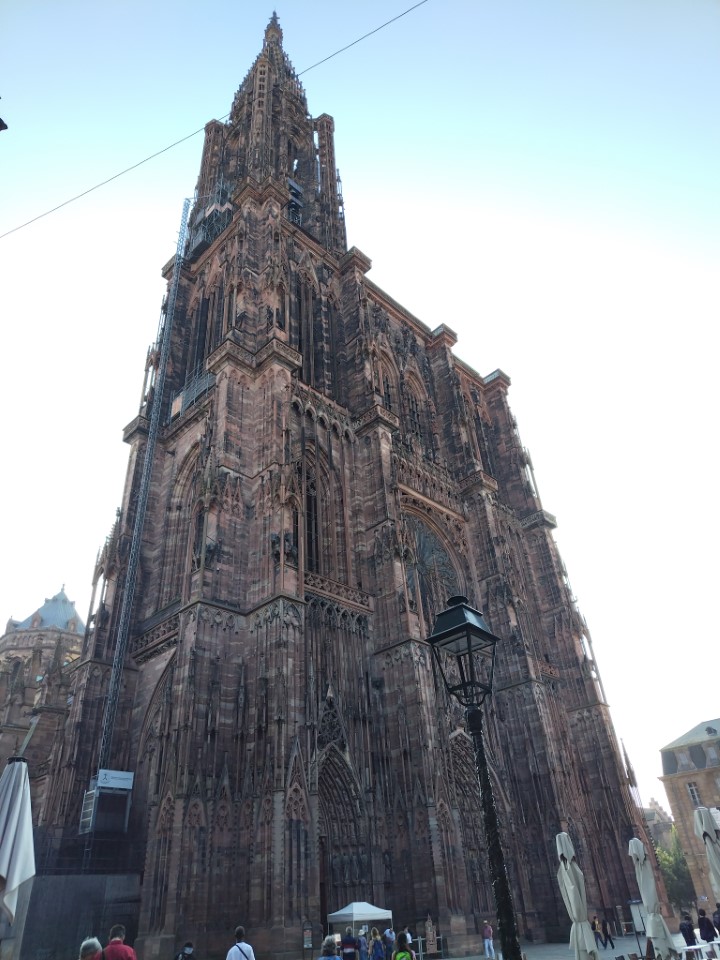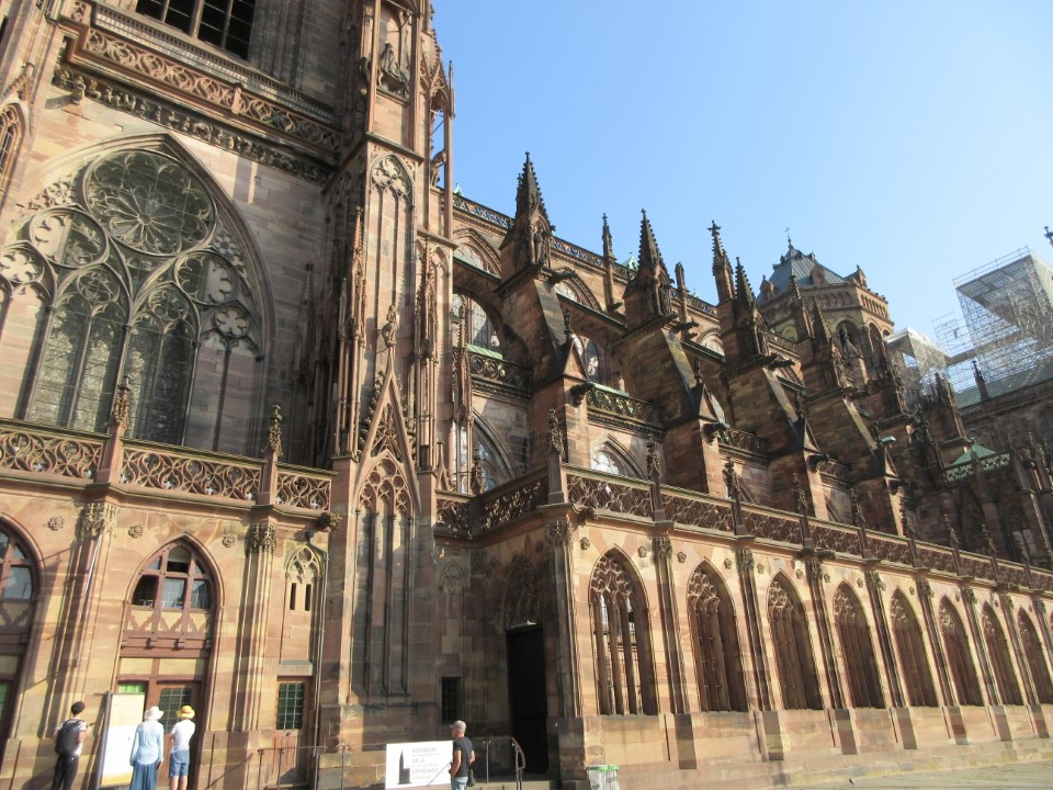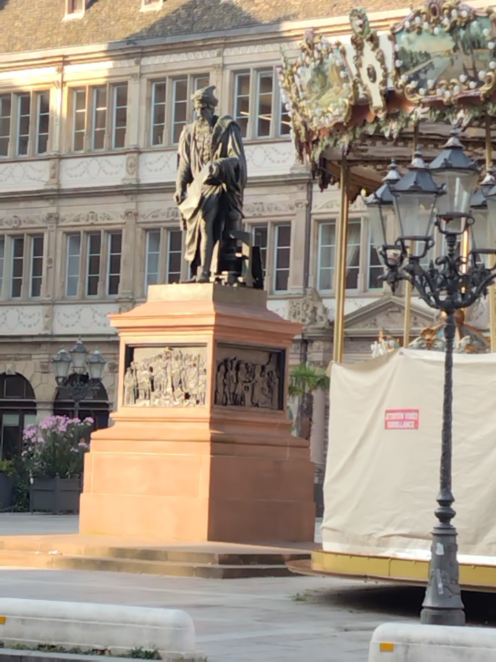せっかくストラスブールに再訪したので、前に出来なかった大聖堂に上がろうと思う。駅でトラムのチケットを買い、前回泊まったメゾンルージュの近くで降りる。グーテンベルク広場を通って大聖堂へ。 |