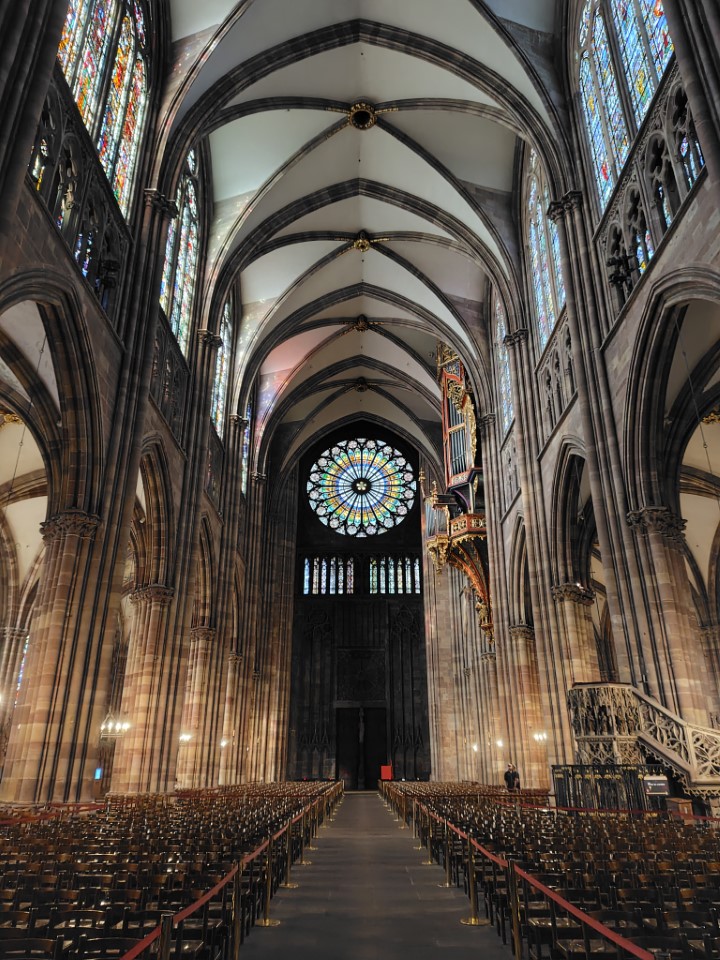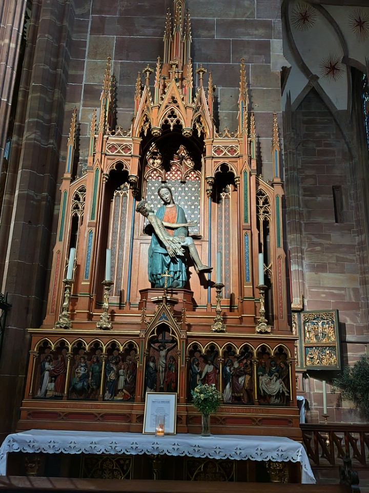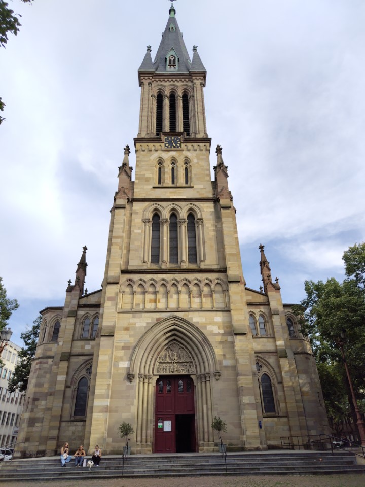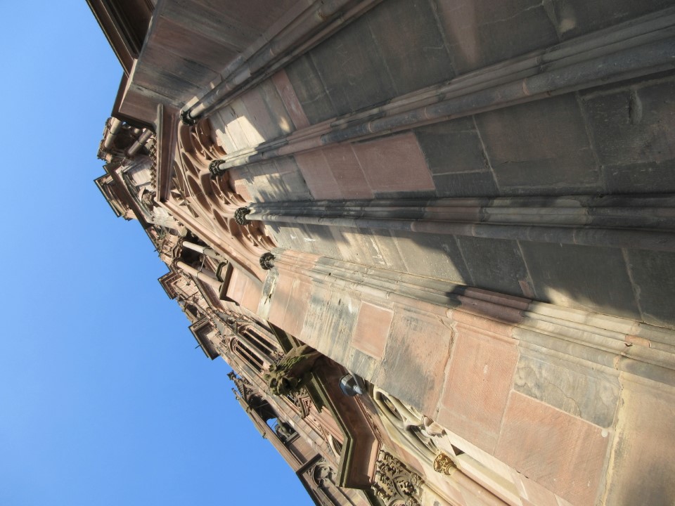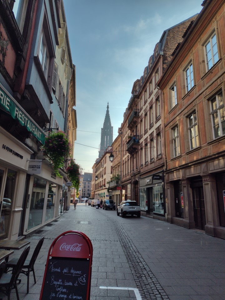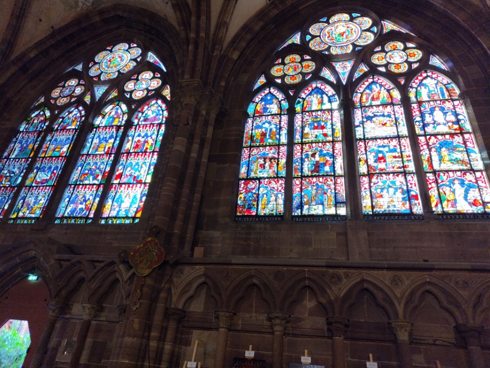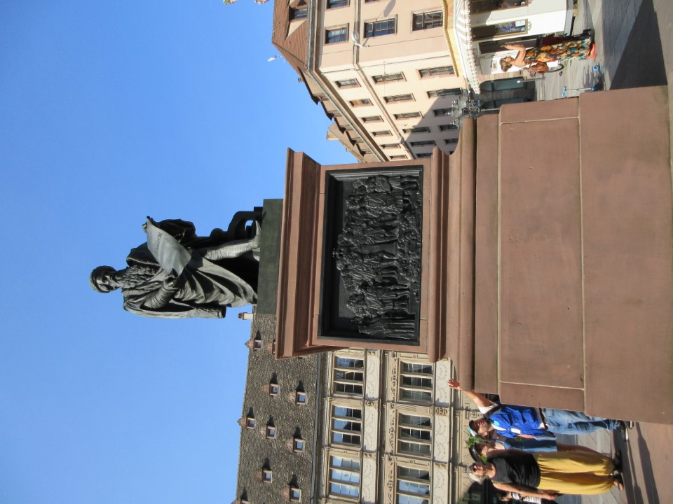せっかくストラスブールに再訪したので、前に出来なかった大聖堂に上がろうと思う。駅でトラムのチケットを買い、前回泊まったメゾンルージュの近くで降りる。グーテンベルク広場を通って大聖堂へ。 |