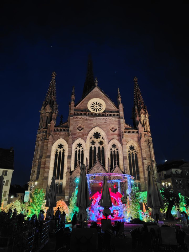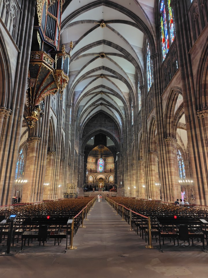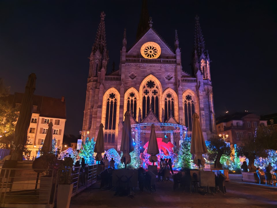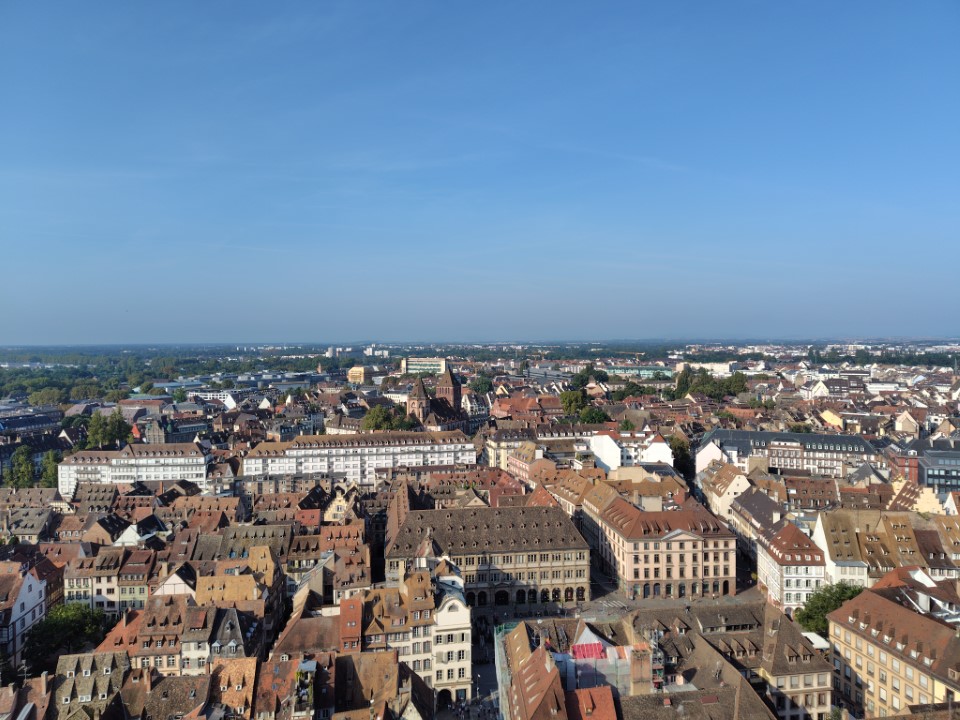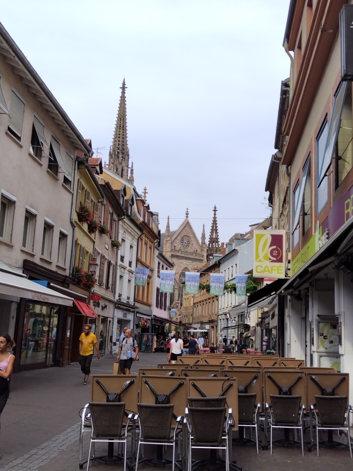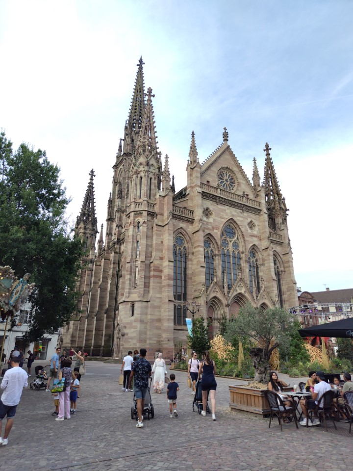 この立派な建物はサンティティエンヌ寺院。ここの中にも入ったけど、写真がないのは何故かな。なんか、中でイベントとかやってて、建物は立派やったけど、中身は撮影するほどではなかったのかも。このピンクの建物は旧市庁舎。今は博物館になってる。2枚目はこの正面の階段を上がったところから撮った写真。右正面に寺院が見える。旧市庁舎は16世紀ルネサンス様式の建物で、特徴的な木組みのファサードが目を引く名所。広場に面し、市の歴史を感じさせる美しい外観が楽しめる。この辺にしか人が集まってなくて、他のところは閑散としてる。 |