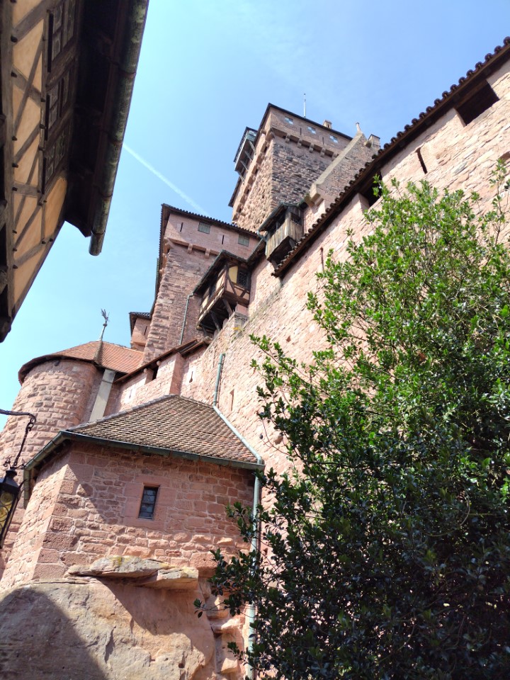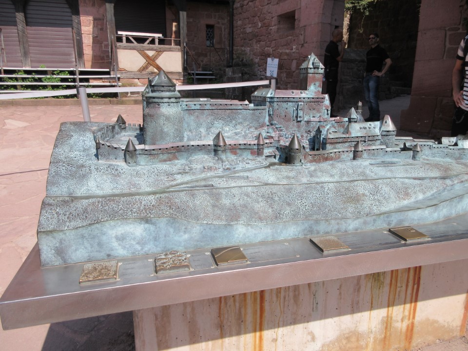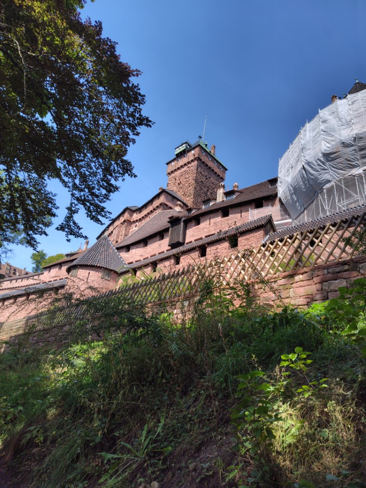 ちなみにこのお城は12世紀に標高757mの山の上に建てられた城塞で、元々は神聖ローマ帝国の重要な防衛拠点やったらしい。城からはアルザス平野、ヴォージュ山脈、黒い森(ドイツ側)まで見渡せる絶景スポットらしいけど、今日の霞み具合やと、そんな景色は見れなさそう(^^; |