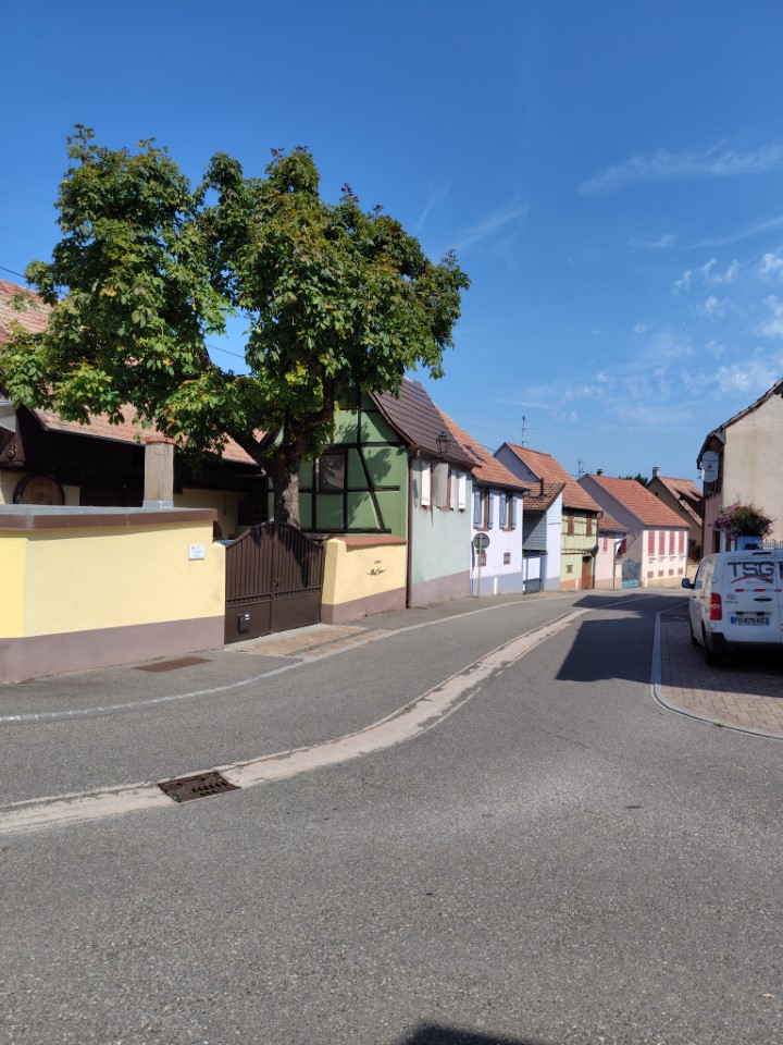 ここのお店でオランジーナと何かパンらしきもの買った気がするけど、もう1年前なので覚えてない。。あとハガキも買ったな。そしてアルベール・マンへ。近くに無料の駐車場があったのでそこに駐めた。そこから歩いて、途中5年前に自転車で通った洞窟みたいな教会の前を歩いて通り、そして、自転車で入っていったら窓からおばあちゃんに「Quelqu’un?(誰?)」と叫ばれた場所の前通ったら、やっぱり5年前と同じおばあちゃんが窓から外をのぞいてた(笑) |