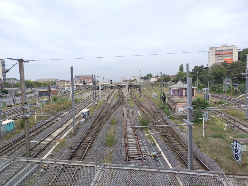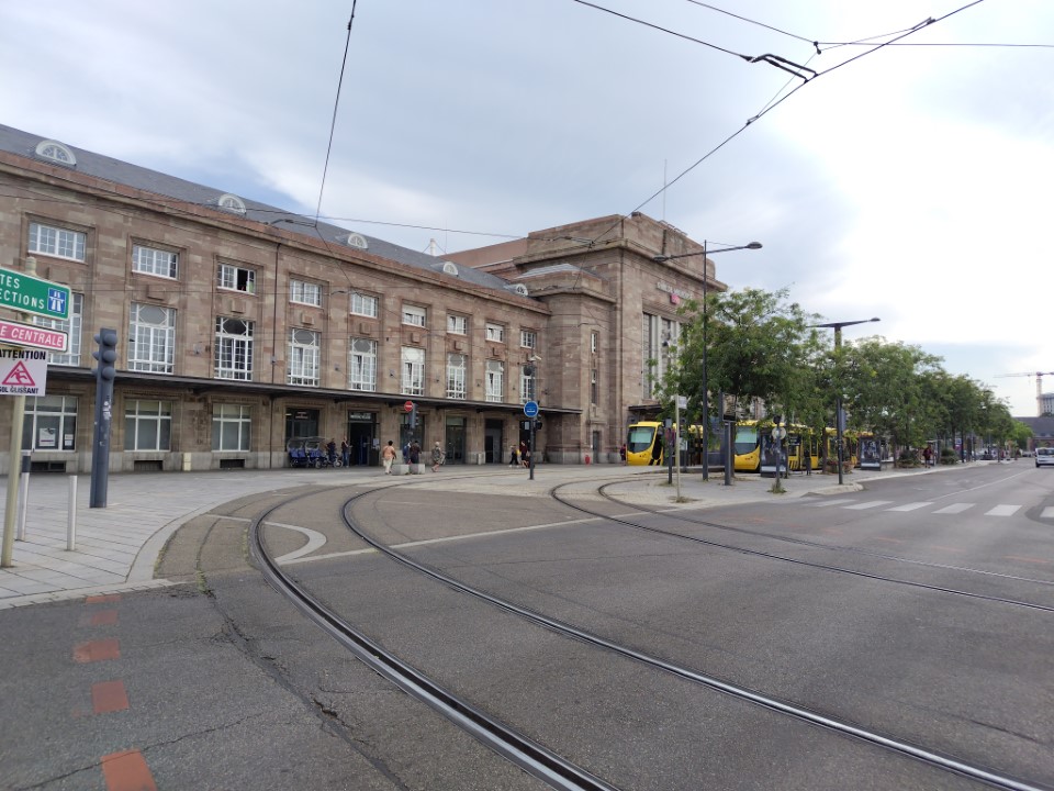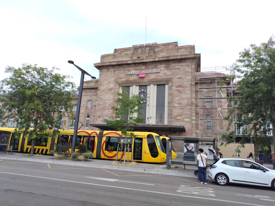 駅を通って、ジャックの本店まで歩く。暑いしかなり遠い。1.5kmって出てるけど2km以上歩いた感覚。ミュルーズって町は見どころがすごく点在していて、トラムとかもないのですごく不便。ほんとは自動車博物館とか列車博物館とかも行ってみたかったけど、1つ1つが離れていて無理やった。まあ、ここはジャックのために立ち寄った町なのでまあいいか。 |