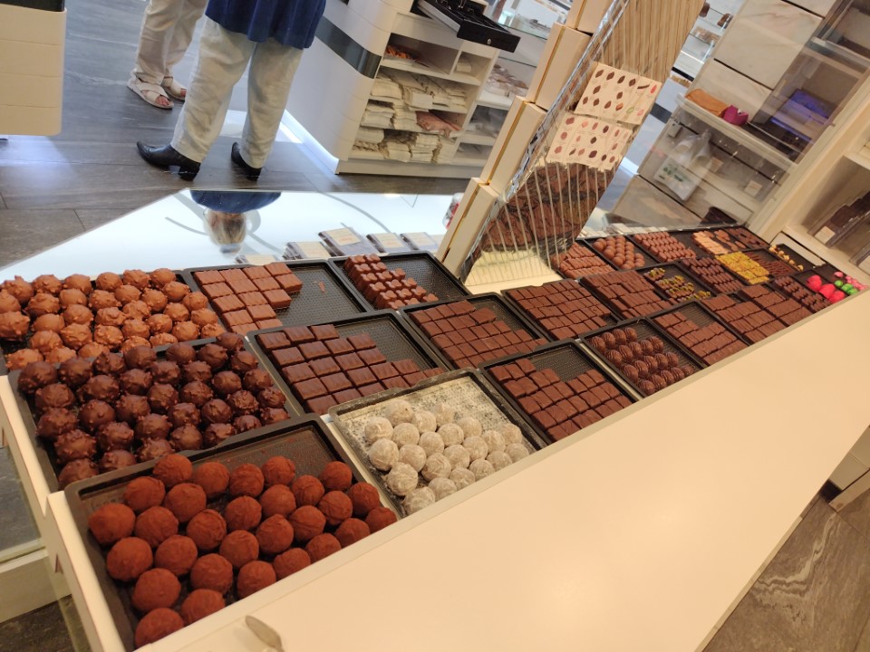 チョコレートとかマカロンとか、その場で食べるお菓子は美味しかった。ケーキとかも買うと、晩ご飯食べれなくなるし。焼き菓子をお土産にいくつか買ったけど、€が高いのでコスパはいまいちな気がする。ちなみに本店まで来たけど市庁舎の近くに支店があったからそこでもよかったかも。 |