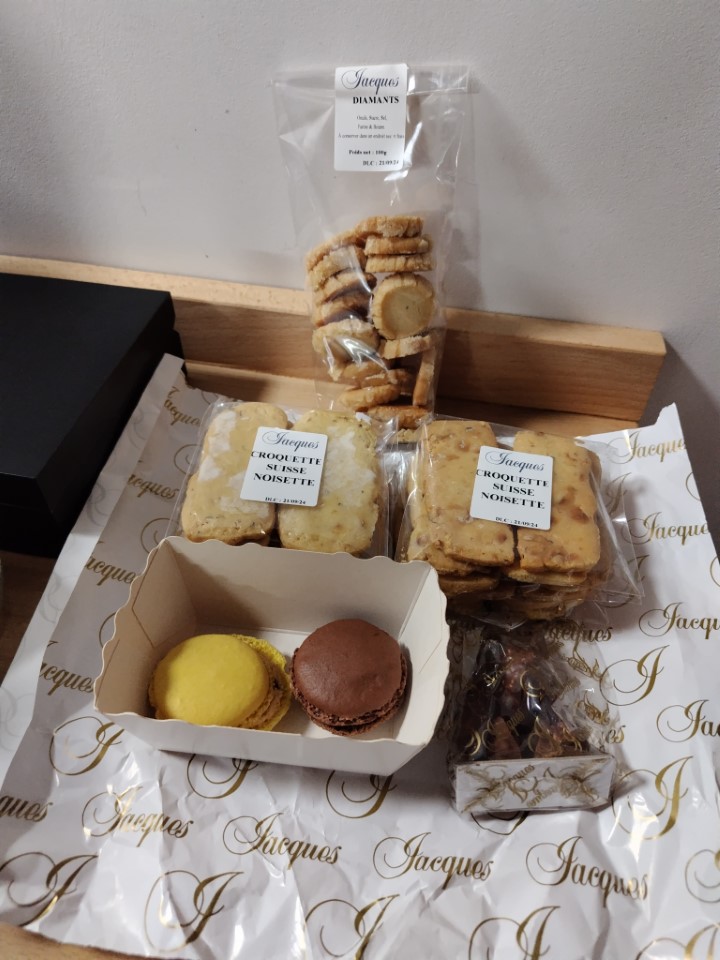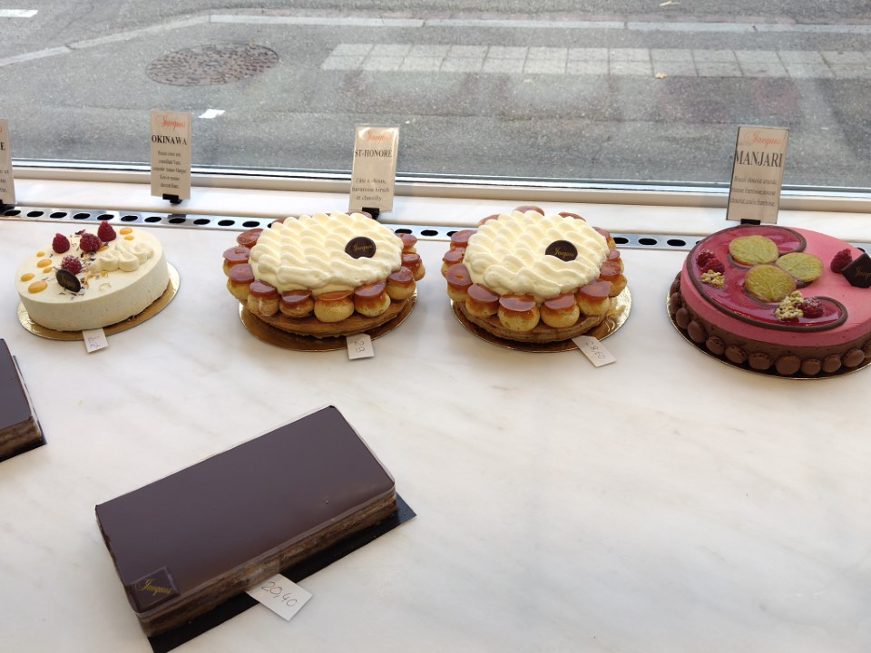 ホテルに荷物を置いてまず1つめの目的地パティスリー・Jacquesへ。今回は何故ミュルーズに来たかというと、一気にジュラまで行くのは運転がしんどいのと、料理研究家のU先生から前からジャックの評判を聞いていたので、一度行って見たかった。4代続く職人の技で、U先生はパリからお菓子をわざわざ買いに行くとか。もう1つコルマールの近くにある「Auberge