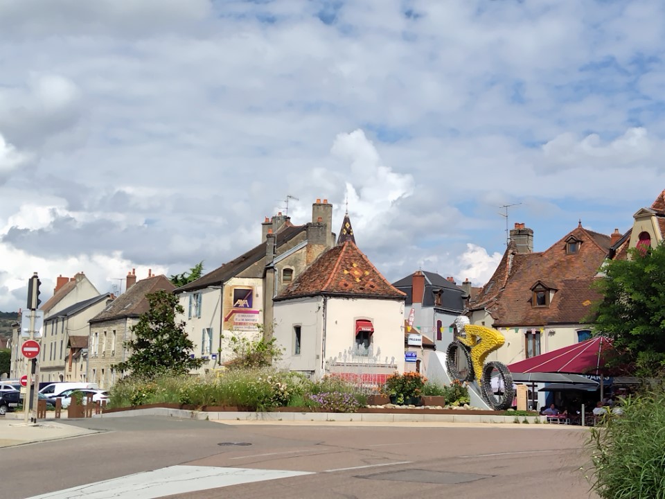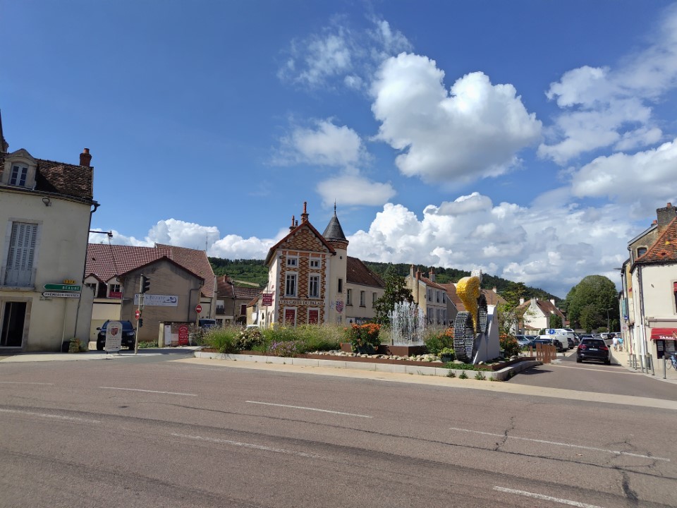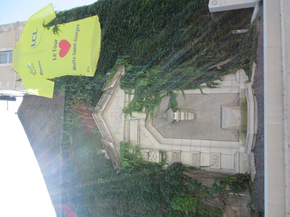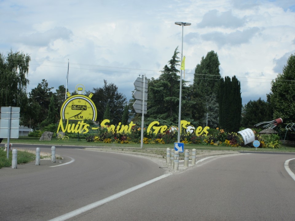 来看板にカシシウムがある。11年前電車で行って駅から歩いた。ここからやと近そう。そしてニュイサンジョルジュの中心で、いつも何かデコレーションしてる広場。 |