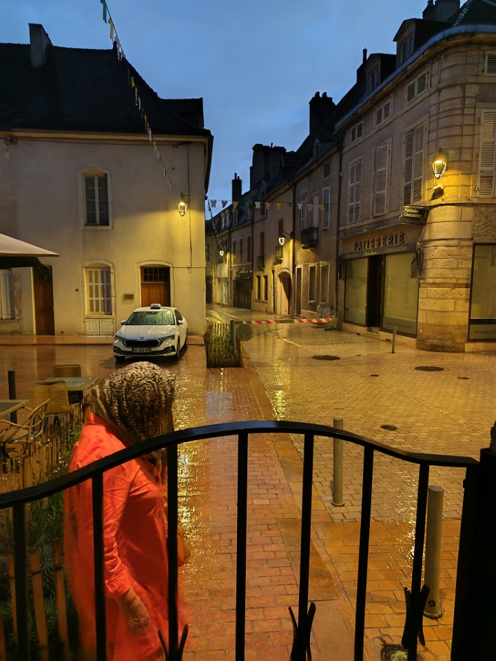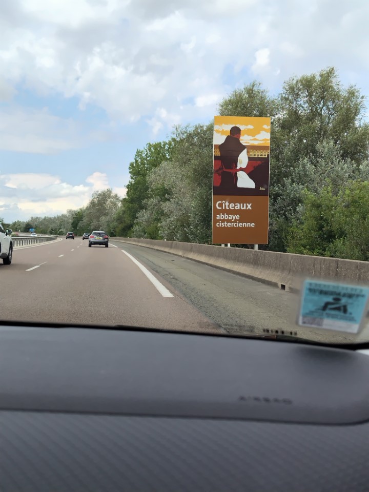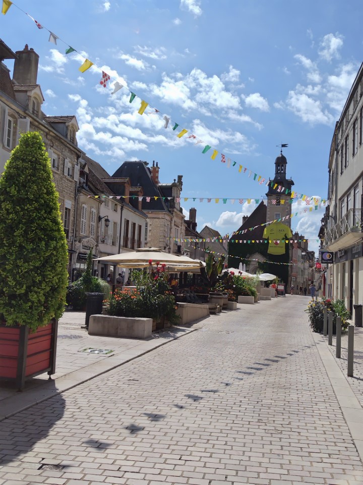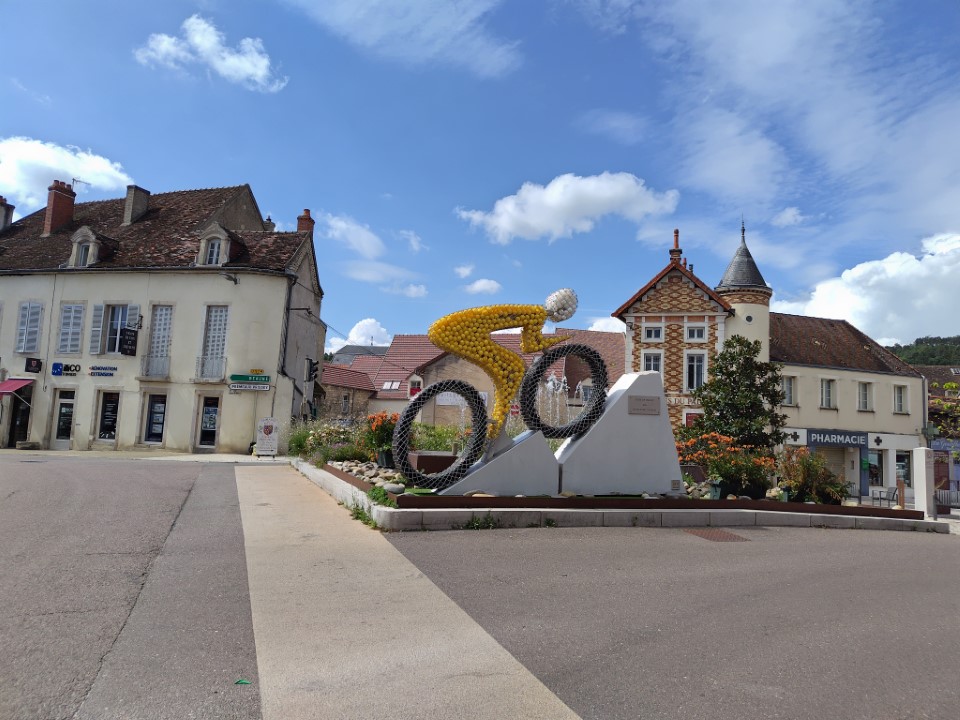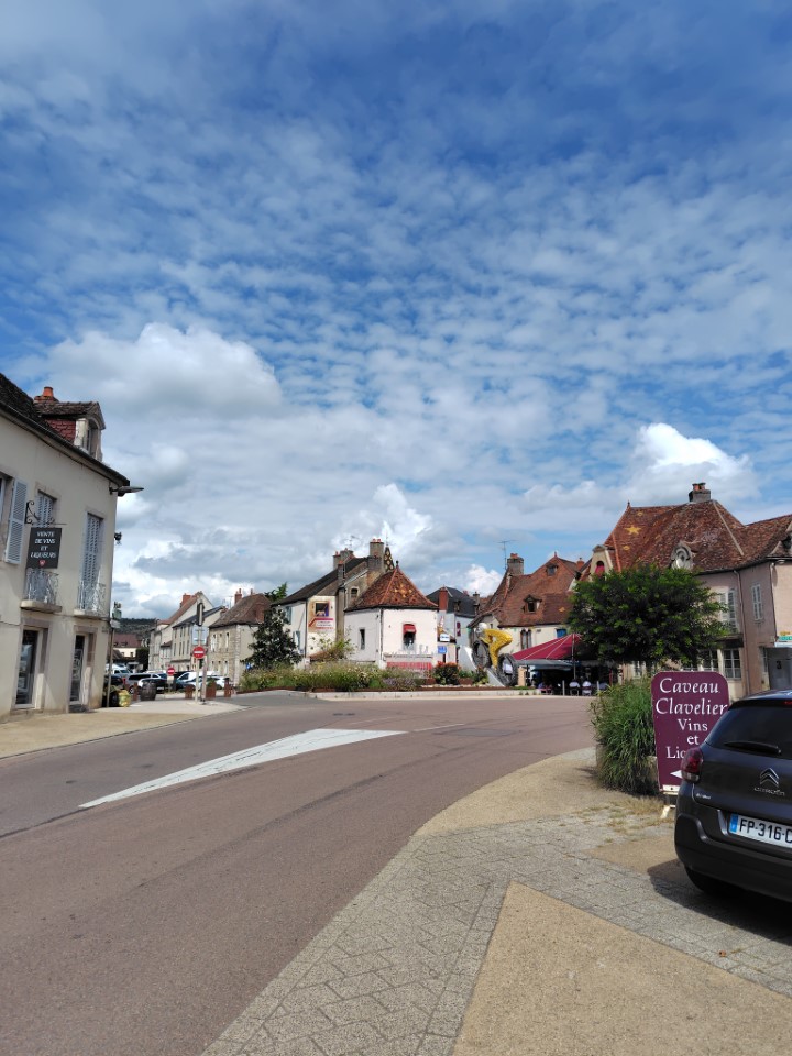 来看板にカシシウムがある。11年前電車で行って駅から歩いた。ここからやと近そう。そしてニュイサンジョルジュの中心で、いつも何かデコレーションしてる広場。 |