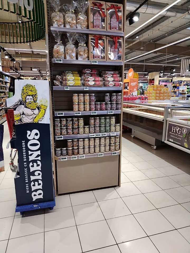 ニュイサンジョルジュには大きなスーパーとガソリンスタンドが併設されたIntermarcheがある。そして、薬局もあった。実は、一昨日の大聖堂の上に登ってふくらはぎがぷるぷるしてから、ふくらはぎが死ぬほど痛くて歩きづらい。。。店員さんに症状を説明して湿布を買った。15.9€ そして、ボーヌにあったパンデピスの有名店Mulot