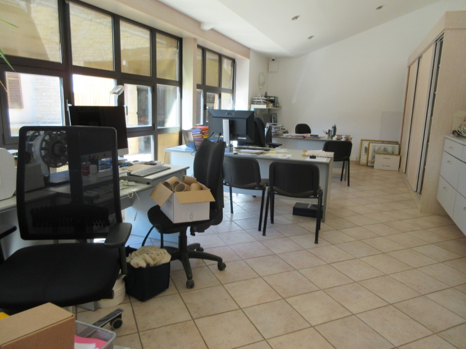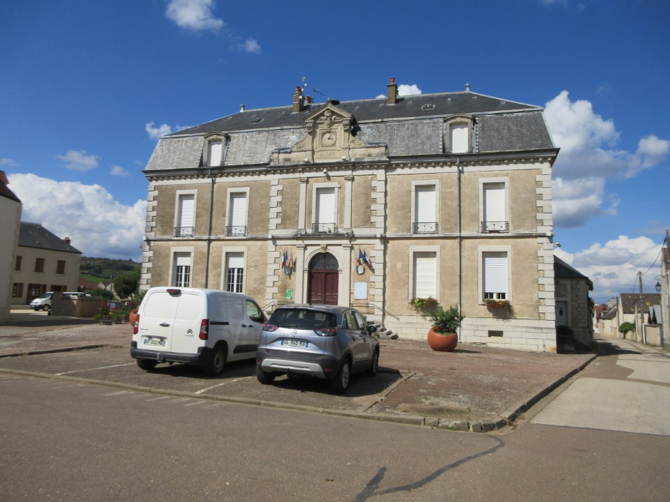 も見慣れたヴォーヌロマネ村の村役場。役場の前の駐車場。一番右上はオフィス。初めて入った! |