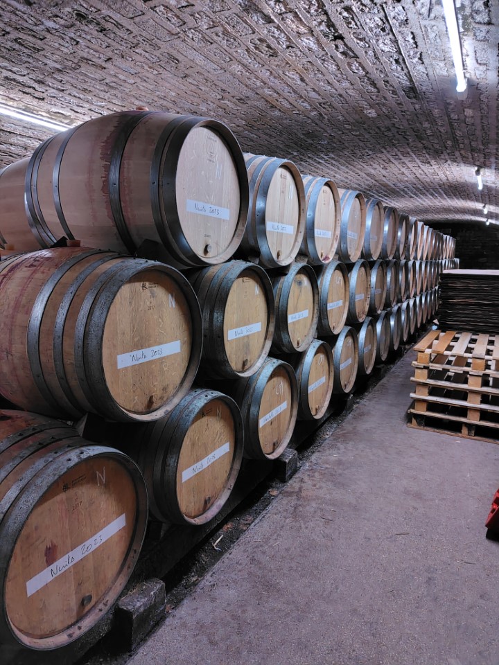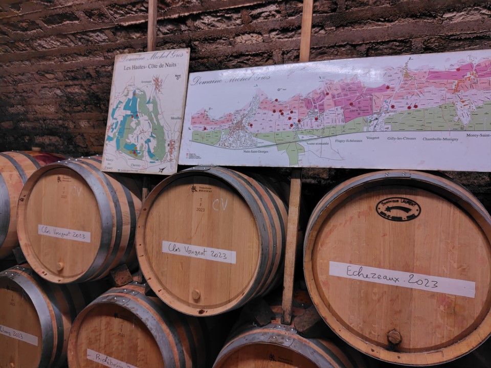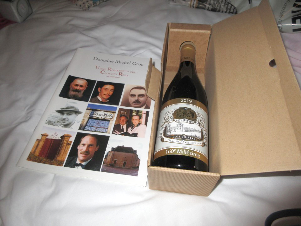 さて、この日のメインイベントはミシェル・グロ。実は2013年にミシェル・グロに訪問してから、毎年のようにフーデックスでミシェルと会ったり、ブルゴーニュの近くに来たら必ずお土産を持って寄り、一緒に写真を撮る。もうミシェルは引退してピエールになってるけど、去年はたまたまミシェルがひょっこり現れて一緒に写真を撮った。こんなに何度も会ってるのに実は中に入って試飲するのは初めてで、今回は予約しておいた。それと、日本ではもう高くて買えないクロデレアの2019を1本譲ってもらえる約束にもなっていたので、お土産沢山持って行った(笑) |