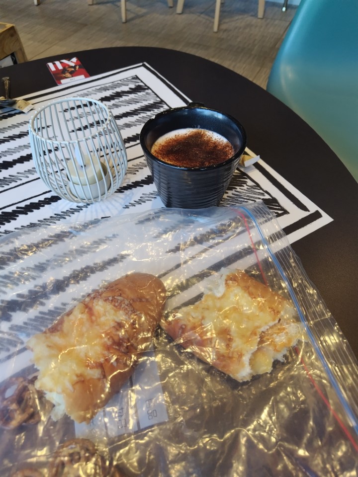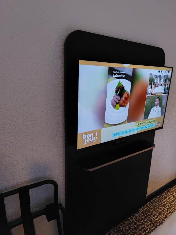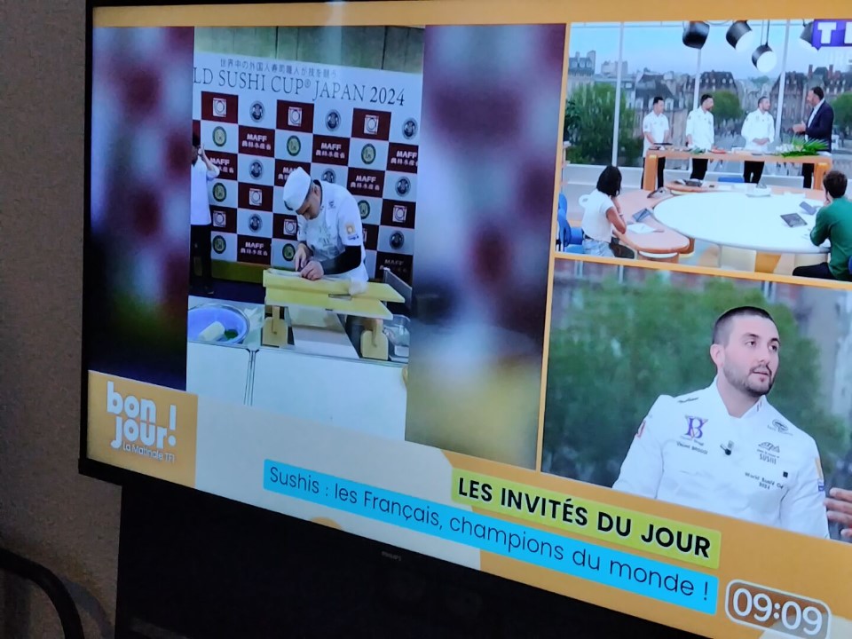 今昨日買ったパンを食べようと思って珈琲を頼んだ。部屋で食べようと思ったらここで食べていいよーってスタッフさんが言ってくれて、イビスのスタッフみんな親切やった。部屋に戻ってテレビを点けたらよく見かける朝の情報番組Bonjourをやってた。なんかフランス人の寿司職人が出てるのでちょっと面白かったので写真を撮ったら、そこから何ヶ月かして、フランス語の授業の時にニコラが、「日本で開催された外国人向けのワールド寿司カップで優勝したのどこの国か知ってる?」と聞いたのでピンと来て「フランス人!」って答えたけど、まさにこの番組のやった! |