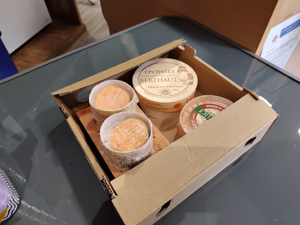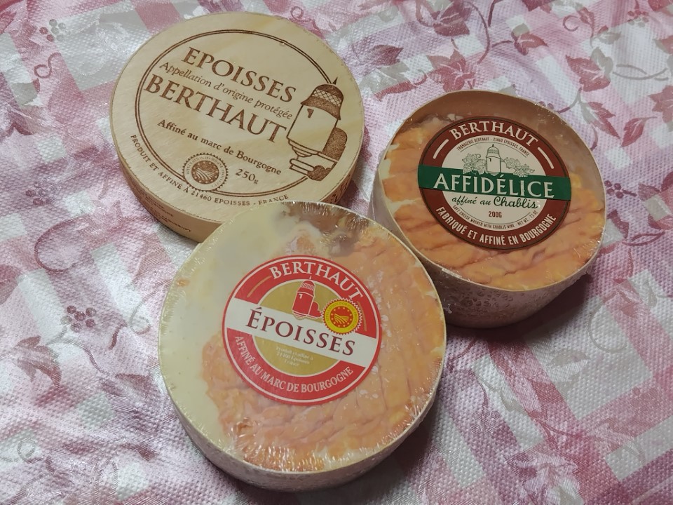 場先にお店に行ったんやったかな。今回どうしても買いたかったのがアフィデリス。シャブリでウォッシュしたエポワスで、ベルトー社の社長が発明したらしい。そしてミニエポワスも売ってたのでお土産に2つほど購入。€が高くなってるとはやっぱり現地は安い!!ファローのマスタードも売ってたし、エポワスのキーホルダーとかグッズ売ってたら買ったのに(笑) |