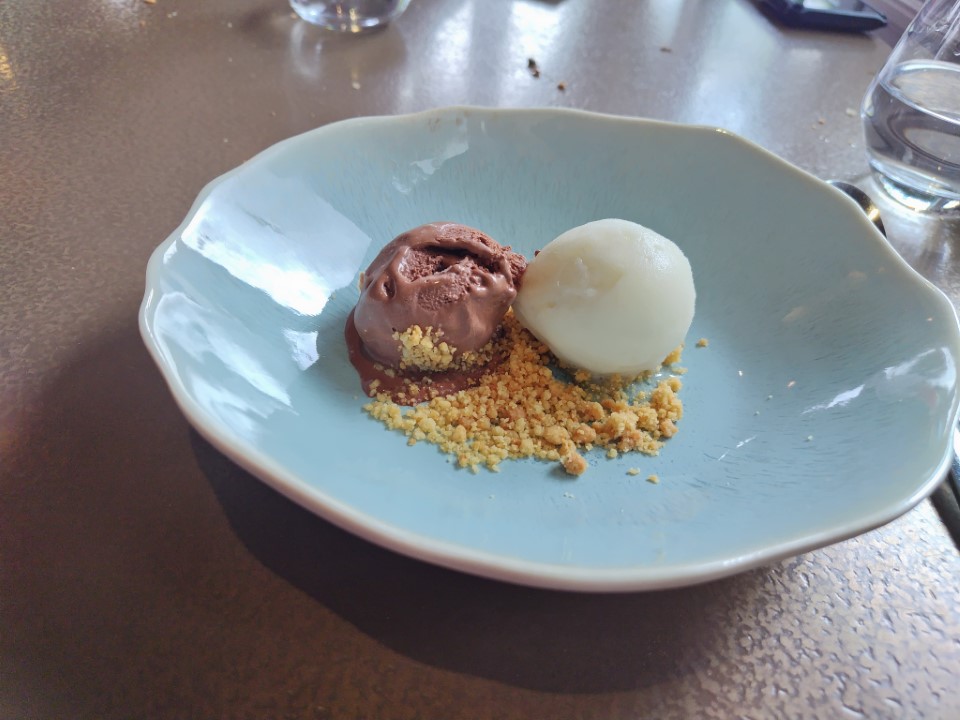 たで、もう相当待たされて、何回も最速してやっと出てきたのがこのひしゃげたアイスクリーム。これ40分もかかる?3分で出来るやろ!同僚の女性スタッフが、ちゃんと理解してないスタッフでごめんねみたいなこと言うてたけど、いくらセカンド店でもこんなスタッフ雇ってたらロワゾーの名前が泣くわ。かなりフランス語で怒りまくって文句を言った。こんなに怒ったのは、ニースのホテルで排水溝の工事が期日までに出来てなかったとき依頼かも(笑)ということで、ここでかなり時間をロスしてしまった。 |